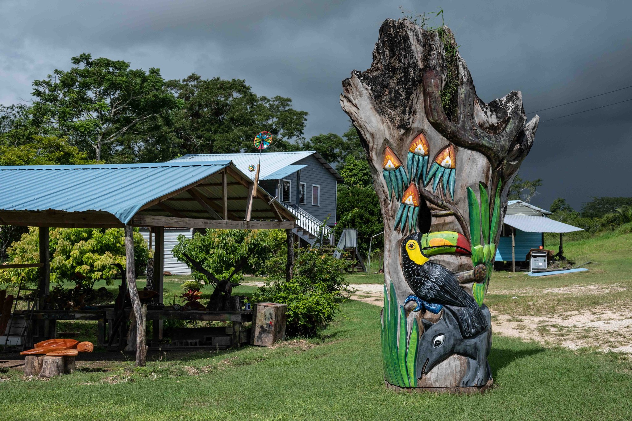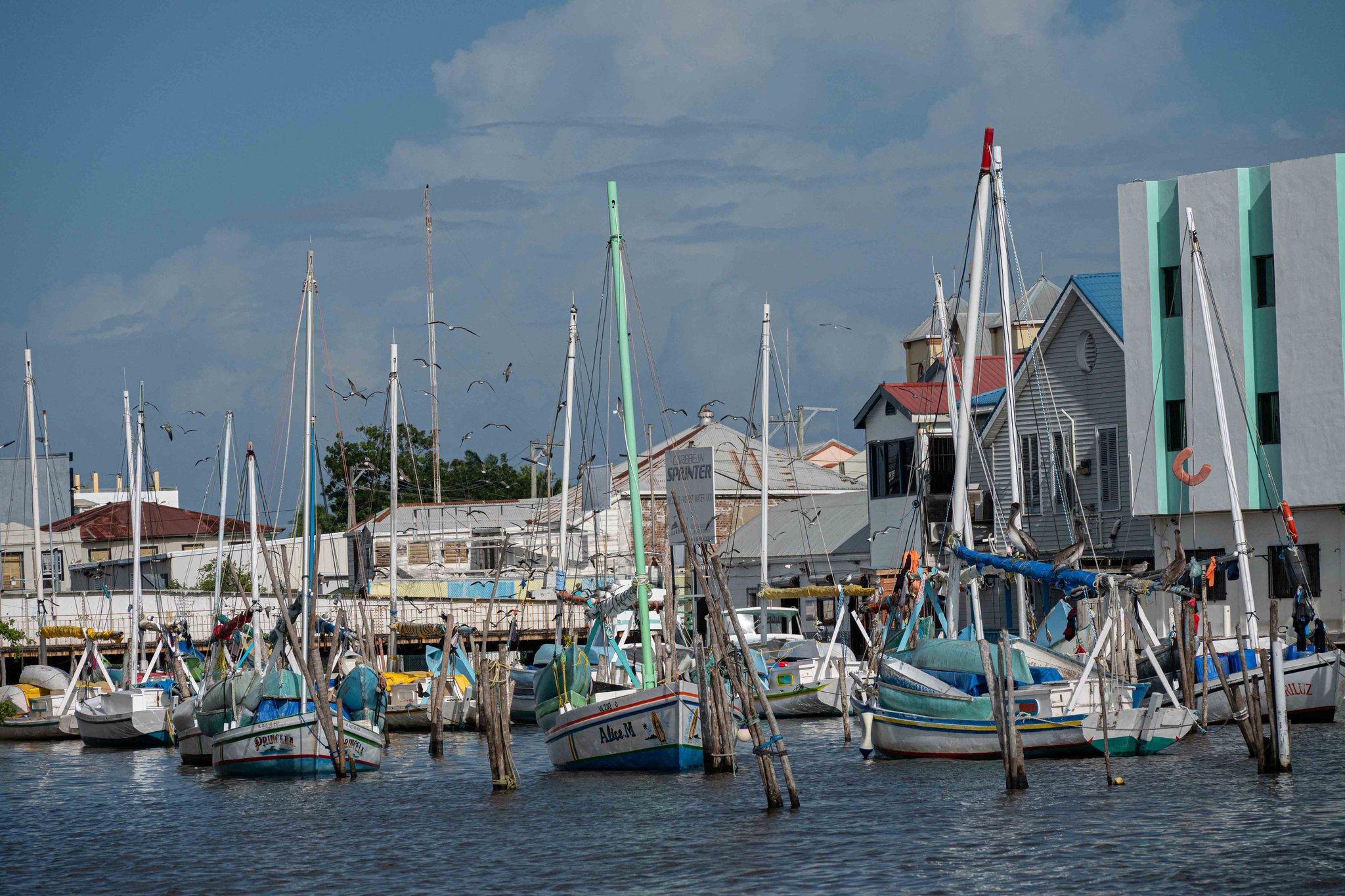 Mein erster Weg in Belize führt mich nach Corozal, einer kleinen Hafenstadt. Die hat ist absolut kein Muss auf dem Weg durch Belize, aber hier gibt es einen Geldautomaten und ich muss mich mit der Landeswährung, dem Belize-Dollar ausstatten, denn ich weiß nicht, ob überall Kartenzahlung akzeptiert wird. Die Strecke ist flach und gut zu fahren. Links und rechts der Straße breiten sich Sümpfe aus. Und dann schaffe ich es doch noch am ersten Tag nach Orange Walk Town, wo ich aber in eine andere Unterkunft gehe, als an der Grenze angegeben – es interessiert ohnehin niemanden. Hier treffe ich auf Felix aus Dresden, der vor einer Woche seine Reise in Richtung Südamerika in Cancún angetreten hat. Wir fahren die nächsten zwei Tage einige Abschnitte zusammen, bevor sich unsere Wege wieder trennen. Schon in Belize City haben wir unabhängig voneinander unterschiedliche Unterkünfte gebucht, wobei diese hier in Belize im Vergleich zu Mexiko unangemessen teuer sind, aber vom Standard nicht die entsprechende Gegenleistung bieten. Belize City ist mit ca. 60.000 Einwohnern die größte Stadt des kleinen Landes und war auch einmal die Hauptstadt. Rund um den Hafen sind ein paar ältere Holzhäuser erhalten, aber für mehr als eine kleine Runde am nächsten Morgen durch die „Altstadt“ reicht die Kulisse dann doch nicht, bevor ich die Stadt in Richtung Belmopan verlasse, der neuen Hauptstadt, die ohne historische Wurzeln in die Mitte des Landes gebaut wurde. Und so sieht sie auch aus. Eine weitläufige Kleinstadt mit schmucklosen Regierungsgebäuden, die im Stadtgebiet verteilt sind. Es gibt sogar einen Weihnachtsmarkt, der mir von meiner Vermieterin wärmstens empfohlen wird…