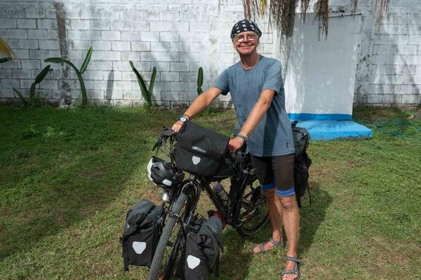 Es bringt überhaupt keinen Spaß, auf der Panamericana mit dem Fahrrad zu fahren, und ich nutze trotz einiger Extrakilometer gern Nebenstrecken. Die Route 5 ist dagegen ein Genuss. Schöne Landschaft, gute Straße, wenig Verkehr und einige Gespräche mit anderen Reisenden und Einheimischen. Ein zweiter Abstecher führt mich nach El Valle de Antón. Es soll einer der schönsten Orte des Landes sein, der in dem Krater eines vor sehr langer Zeit erloschenen Vulkans liegt. Und genau da liegt das Problem. Denn das Höhenprofil der Strecke in dieses Tal habe ich gnadenlos unterschätzt. Mein Routenplaner schickt mich zuerst auf eine Piste, die schon im trockenen Zustand mit meinem schweren Rad nicht zu fahren ist. Ein leichter Regenguss, eigentlich kaum der Rede wert, verwandelt den Lehmboden zudem in eine glitschige Rutschbahn. Seit Vancouver muss ich das erste Mal meine Fahrradsandalen gegen festes Schuhwerk tauschen, weil ich sonst keinen Halt finde. Mit Müh und Not wuchte ich mein Fahrrad die Strecke nach oben, um dann mit bis zu 20% Gefälle in den Ort zu rollen, der total touristisch und sehr teuer ist. Ich hatte mir vorher schon ein Hostel ausgesucht, das auch Einzelzimmer haben soll, die aber ausgebucht sind. Schon vor dem Blick in die Schlafsäle weiß ich, dass ich kein Bett zwischen den ganzen jungen Backpackern haben will und schlage lieber wieder mein Zelt unter den Bäumen auf. Spätestens am nächsten Morgen beim Frühstück weiß ich, dass diese Art der Unterkünfte nichts für mich ist, als sich ein „Althippie“ mir gegenüber an den Tisch setzt, ungeniert sein Gebiss aus dem Mund nimmt und in der Hosentasche verstaut, um sich dann über seine Pfannkuchen und Bananen herzumachen. Ich bleibe noch eine ganze Weile auf dem Platz, weil es einfach faszinierend ist, die vielen verschiedenen Vögel in den Bäumen zu beobachten. Mehr als 500 Arten soll es in den Wäldern der Region geben. Vor allem Wanderer zieht es in die Gegend, zu einer Bergwanderung habe ich keine Lust und Besuche der Wasserfälle oder heißen Quellen sind nur gegen hohe Eintrittsgelder möglich. Nein danke. Glücklicherweise ist der Weg aus dem Krater nicht so steil wie der Hinweg und ich muss nicht schieben und kehre zwangsläufig zurück auf die Hauptstraße.