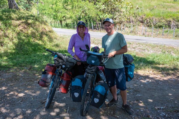 Mit den 16.000km, die hinter mir liegen, habe ich den 8. Grand nördlicher Breite erreicht. Das ist für mich schon ein besonderer Moment, denn es ist geografisch die Mitte zwischen dem 70. Grad nördlicher Breite, wo ich gestartet bin, und meinem Ziel auf 54 Grad südlicher Breite. Die Strecke bis zu meinem Ziel sollte wesentlich kürzer sein, weil ich bis hierher um fast 70 Längengrade in Richtung Osten bewegt habe, und es jetzt fast nur noch südlich weitergeht, dafür wird der zweite Teil durch die Anden Südamerikas noch eine ganz besondere Herausforderung. Ich bin ganz bestimmt nicht der Schnellste unter den Reisenden auf dieser Strecke, aber ganz so viel Zeit wie andere lasse ich mir auch nicht. An diesem Tag begegne ich zwei Amerikanern, von denen der jüngere auch in Prudhoe Bay gestartet ist, allerdings schon ein Jahr früher als ich. Carmen aus Lübeck und Paul aus Dresden, denen ich ein am nächsten Tag begegne, sind schon seit drei Jahre in Südamerika unterwegs.