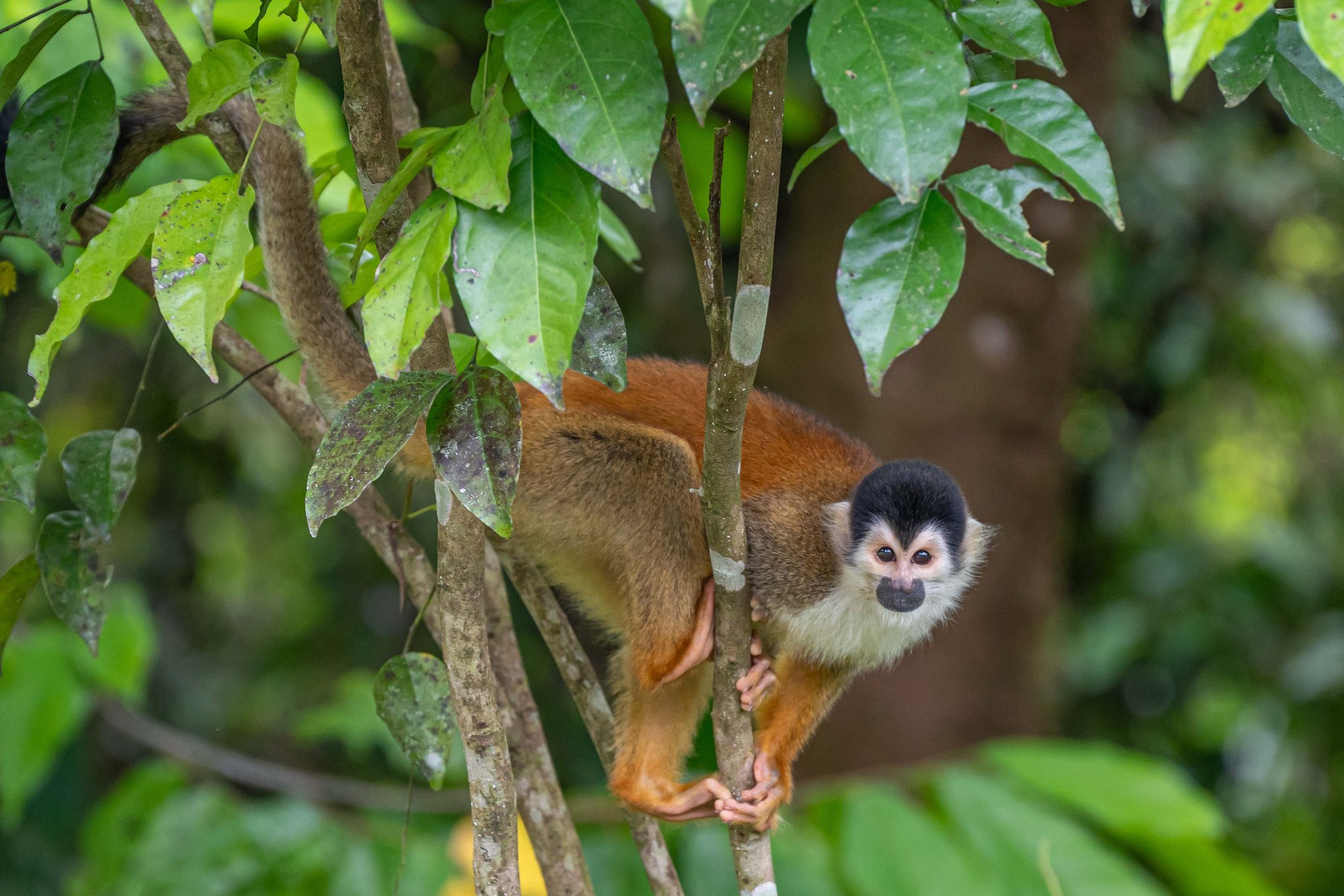 Auch die darauffolgende Nacht verbringe ich auf einem Campingplatz an der Küste. Sehr schlicht, sehr günstig mit vielen Surfern, die hier ihr kleines Paradies gefunden haben. Meine Platznachbarn aus Frankreich, unterwegs im Mietwagen mit Dachzelt, erzählen, dass am Vortag ein Panther unmittelbar vor ihren Augen die Straße überquert hat. So viel Glück habe ich bei meinen Begegnungen mit Tieren nicht. Die meisten Exoten, denen ich begegne, liegen überfahren auf der Straße – Schlagen, Leguane, Gürteltiere, sogar zwei Ameisenbären und ein Faultier habe ich gesehen, die keine Chance haben durch den dichten Verkehr die Straße zu überqueren. Immerhin meint es eine Totenkopfäffchen-Familie in den Bäumen direkt neben der Fahrbahn gut mit mir und statt wie die meisten Tiere bei der Annäherung eines Radfahrers sofort zu flüchten, posieren sie direkt vor meiner Kamera auf den Blättern einer Bananenstaude. Und als kleine Zugabe beobachte ich kurze Zeit später, wie ein Tukan das Nest von kleineren Singvögeln auf einem Strommast zerpflückt und sich auf durch das Gezeter und die Angriffe der Eigentümer nicht von seinem Tun abbringen lässt.