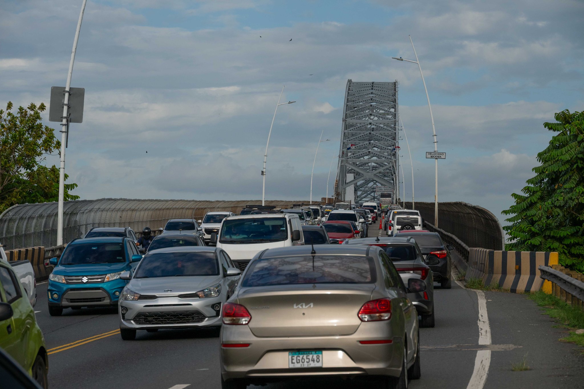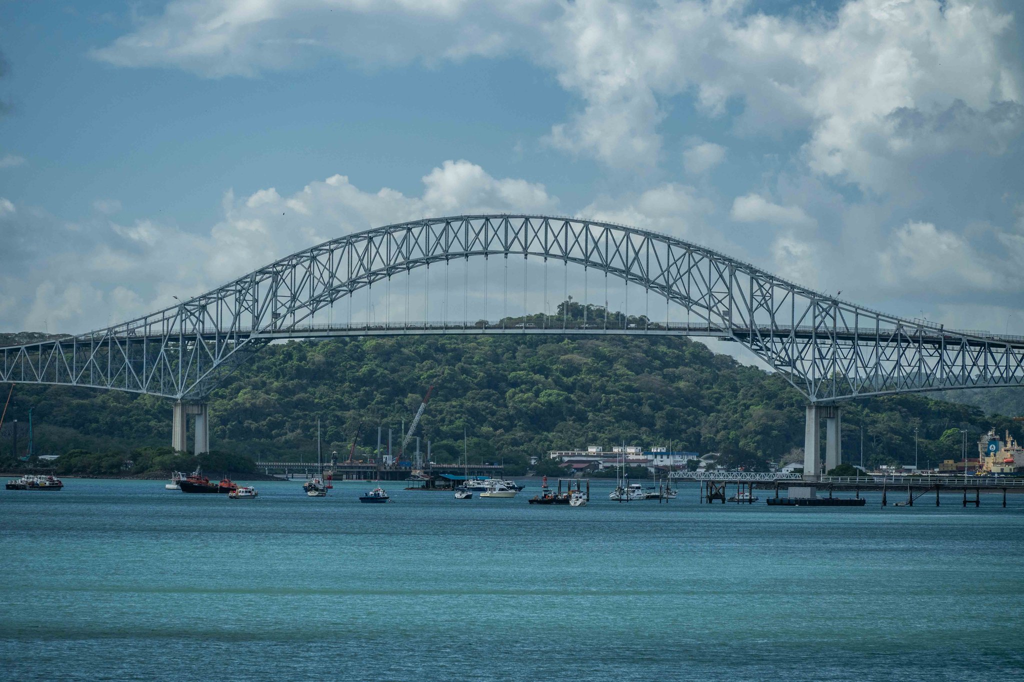Die erste der beiden großen Hürden Panamas liegt vor mir, der Panamakanal. Je näher ich der Hauptstadt komme, desto dichter wird der Verkehr und ich weiche wieder einmal auf eine Nebenstrecke aus. Sie ist tatsächlich deutlich verkehrsärmer, dafür aber über viele Kilometer eine Großbaustelle, weil über der Strecke eine moderne Hochbahnstrecke mit etlichen Bahnhöfen neu errichtet wird. Auch hieran erkennt man, dass Panama dank der Einnahmen des Panamakanals und der vielen Banken wirtschaftlich sehr gut dasteht. Ohne Probleme komme ich durch diesen Bereich und bin dann auf der acht- bis zehnspurigen Autobahn Richtung Süden. Alles ist neu und es scheint kaum Verkehr zu herrschen. Das ändert sich radikal, als ich das Ende der Ausbaustrecke erreiche. Die Straße verengt sich auf vier Fahrspuren, drei davon führen im Feierabendverkehr stadtauswärts und nur eine in Richtung Panama City. Der Verkehr staut sich über Kilometer in beide Richtungen und ich dränge mich irgendwie an den Fahrzeugen vorbei. Die Aussichtsplattform auf die alte Brücke „Las Americas“ liegt auf der anderen Straßenseite – keine Chance dorthin zu kommen. Nach Informationen aus dem Internet ist es verboten, die Brücke zu Fuß oder mit dem Fahrrad zu überqueren, von anderen Radfahrern weiß ich aber, dass es einen schmalen Seitenstreifen gibt, auf dem man schieben oder vorsichtig fahren kann. Der Streifen ist sehr schmal. Aber der Verkehr ist so dicht, dass ich nicht als Hindernis auf dem einzigen Fahrstreifen stadteinwärts unterwegs sein möchte und von aufgebrachten Autofahrern abgedrängt werde. Also hebe ich mein Rad über die Leitplanke und versuche zu schieben. Unmöglich. Ich stapele die Fahrradtaschen teilweise auf dem Gepäckträger, um überhaupt in die schmale Gasse zwischen Maschendraht außen und Reling zur Fahrbahn zu passen. Nur sehr langsam und mühsam komme ich vorwärts und zerreiße mir meine Fahrradhose an der Begrenzung zur Fahrbahn. Nach vielleicht 200 quälenden Metern endet die Reling und es bleibt nur noch ein ca. 30cm breiter Seitenstreifen. Gleichzeitig sehe ich, dass dieser auf der anderen Seite wesentlich breiter ist – das ist die Seite, von der mir entgegenkommende Radfahrer erzählt hatten… Dorthin zu gelangen ist unmöglich. Es gibt nur einen Ausweg: Alle Taschen wieder auf das Rad, auf die Fahrbahn und irgendwie zwischen den Autos auf die andere Seite gelangen. Es ist wirklich überraschend für mich, wie die Autofahrer reagieren. Drei oder vier Fahrzeuge überholen mich sehr langsam und vorsichtig und danach folgt mir die Schlange in meinem Tempo. Ich gebe Gas und versuche so schnell wie möglich wieder von der Fahrbahn zu verschwinden. Alles geht gut und ich bin froh, dieses Hindernis überwunden zu haben, auch wenn ich gern noch das eine oder andere Foto von oben gemacht hätte, was aber wahrscheinlich zu Tumulten der Autofahrern geführt hätte.