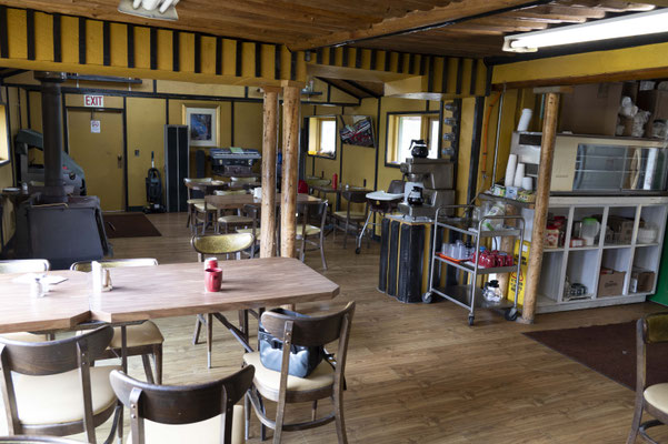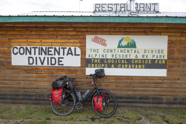 Da es unterwegs kaum Infrastruktur gibt, nutze ich natürlich jede sich bietende Gelegenheit, um mich zu versorgen. Einer der Orte, an die ich mich erinnere, ist die „Continental Divide Lodge“, die andere Radler in den höchsten Tönen lobten. Meine Erinnerung ist nicht mit dem hochtrabenden Namen, aber mit der Location verbunden. Sie sieht innen und außen noch genauso aus wie vor drei Jahren und der Service ist ähnlich, naja, sagen wir einmal bescheiden. Immerhin bekomme ich hier auch für 10 $ eine Dusche in einem abseits gelegenen Container. Den Zustand dieser Einrichtung will niemand genauer wissen. Aber immerhin nach einigen Tagen wieder einmal gründlich abgespült.