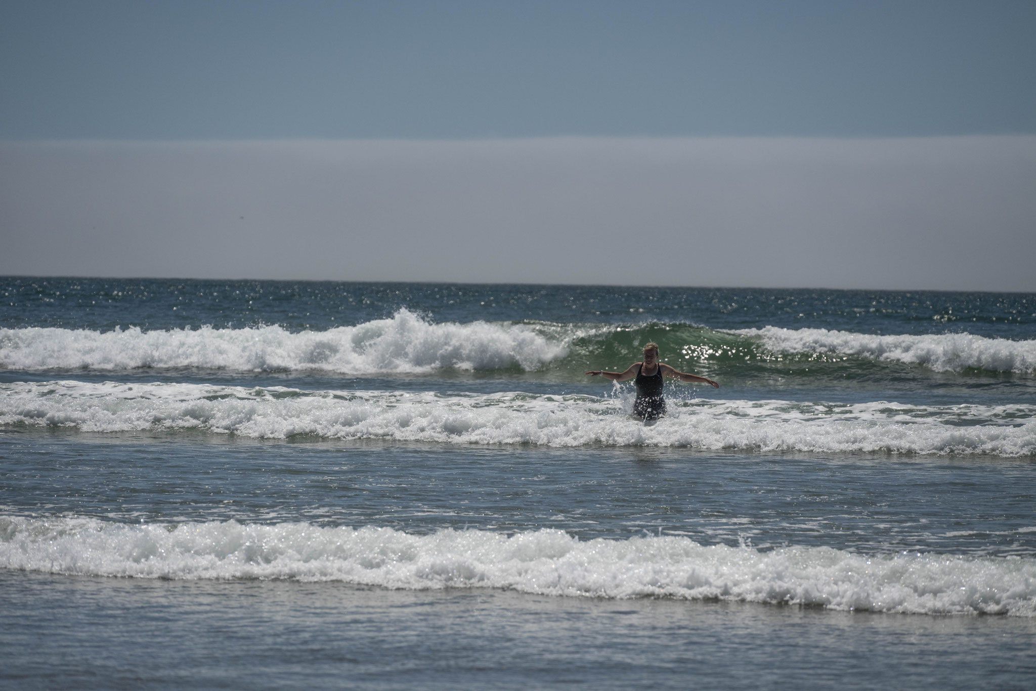 Übrigens: Bei 13,8 Grad Wassertempertur im offenen Pazifik wagen sich nur die allerwenigsten ohne Neo ins Wasser - ich nicht!