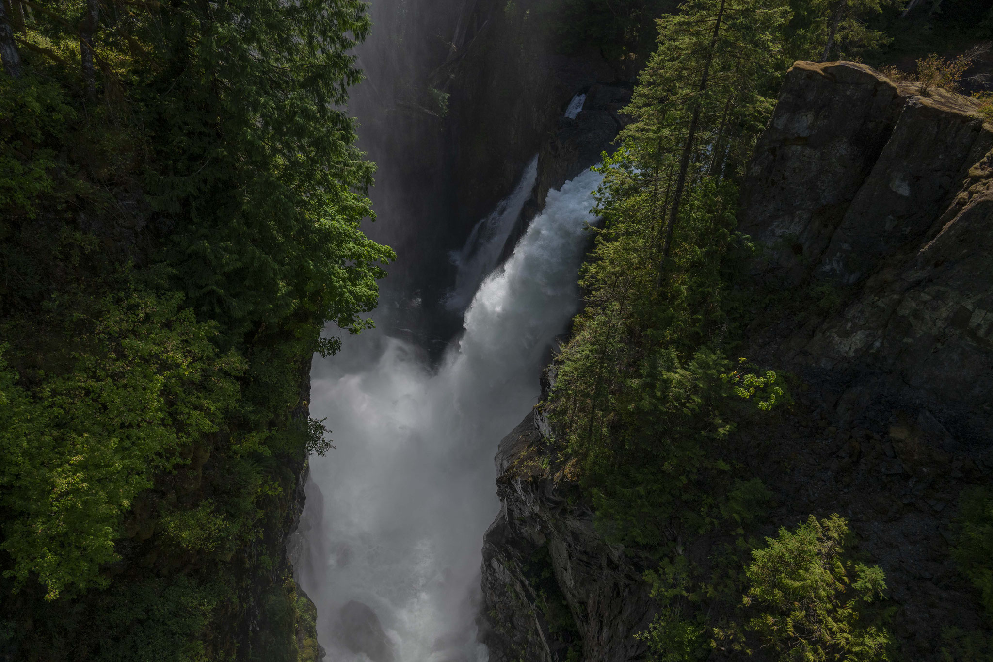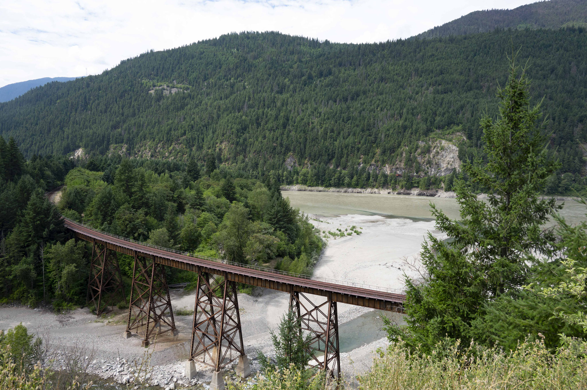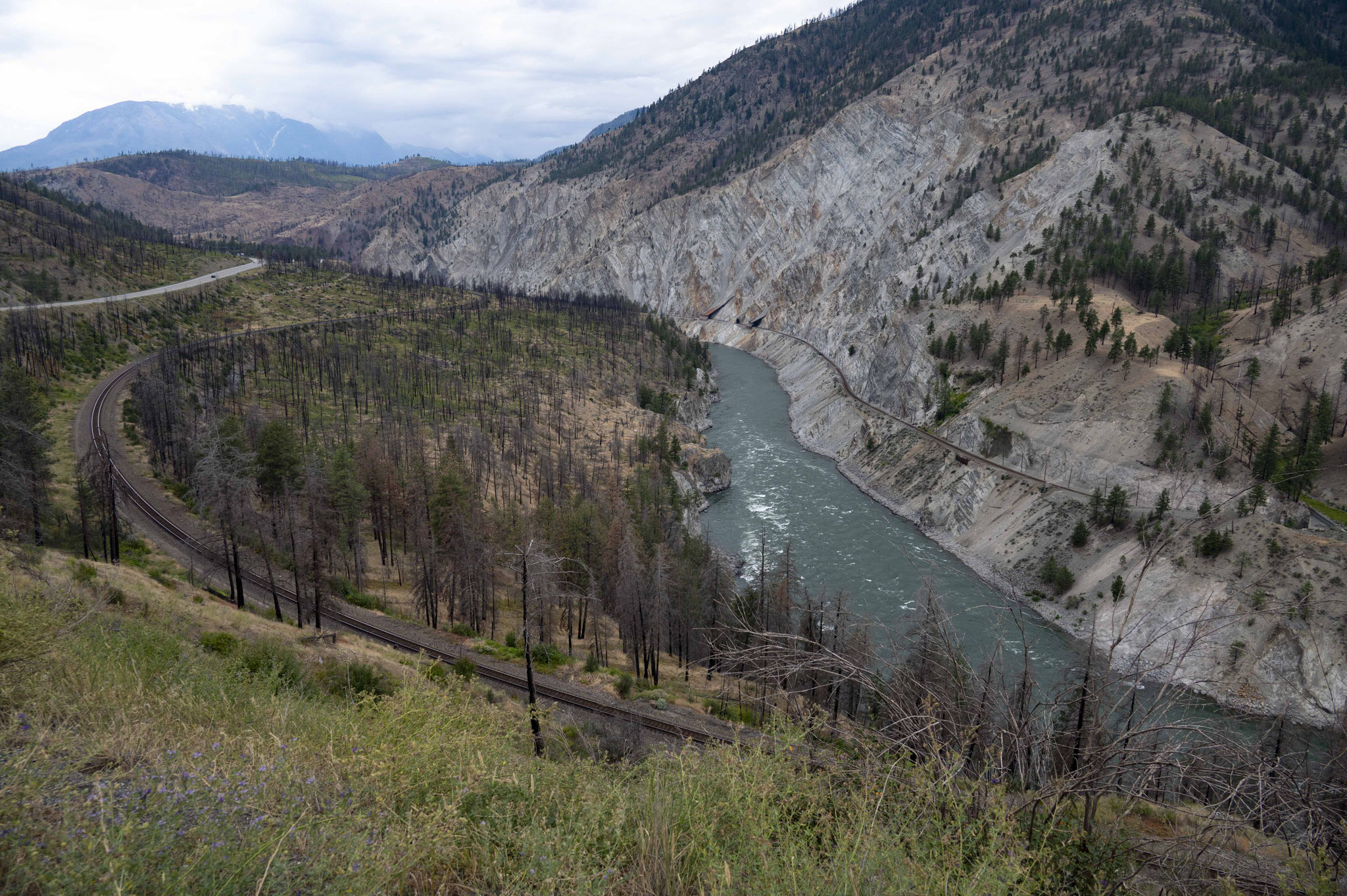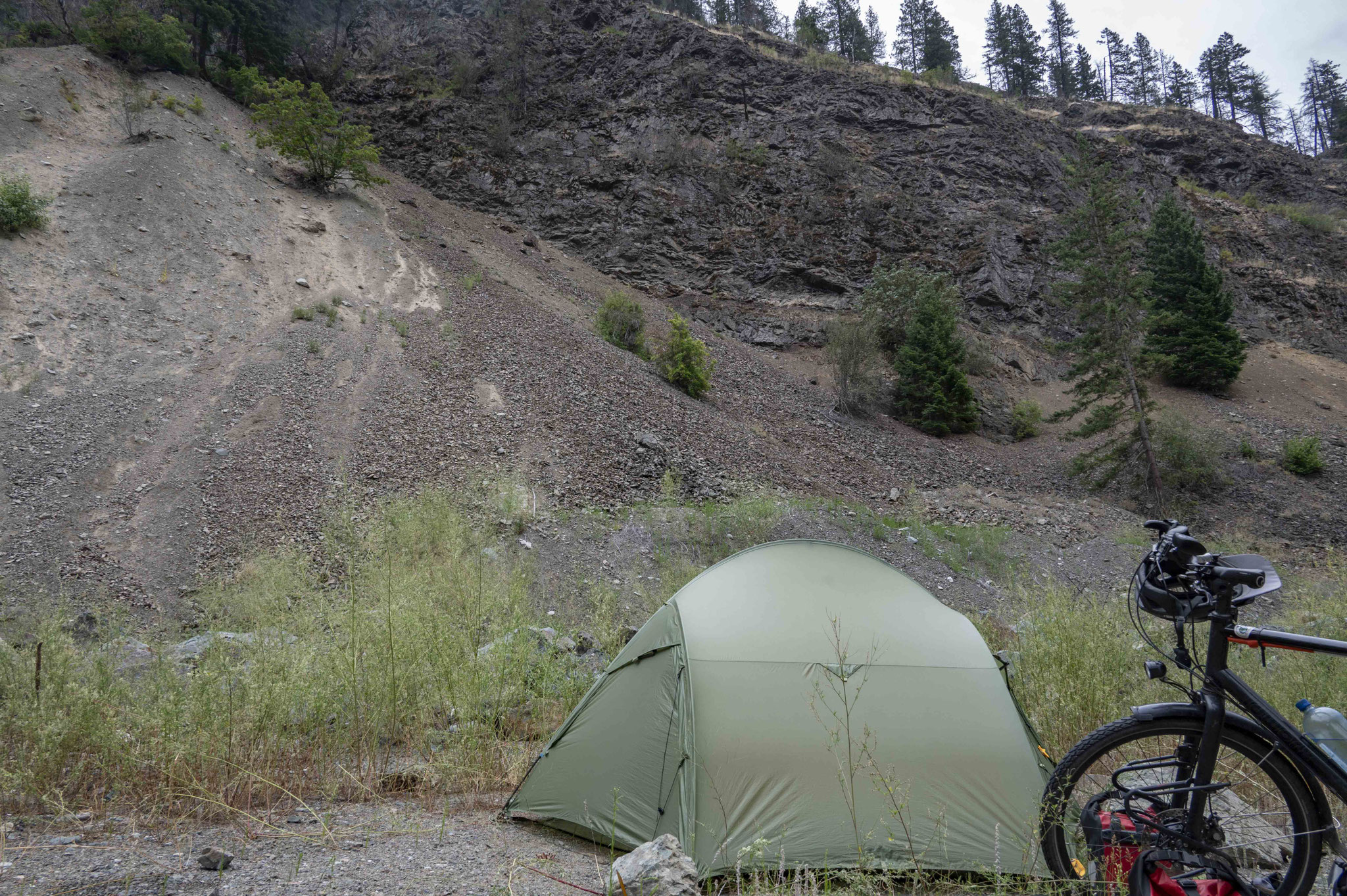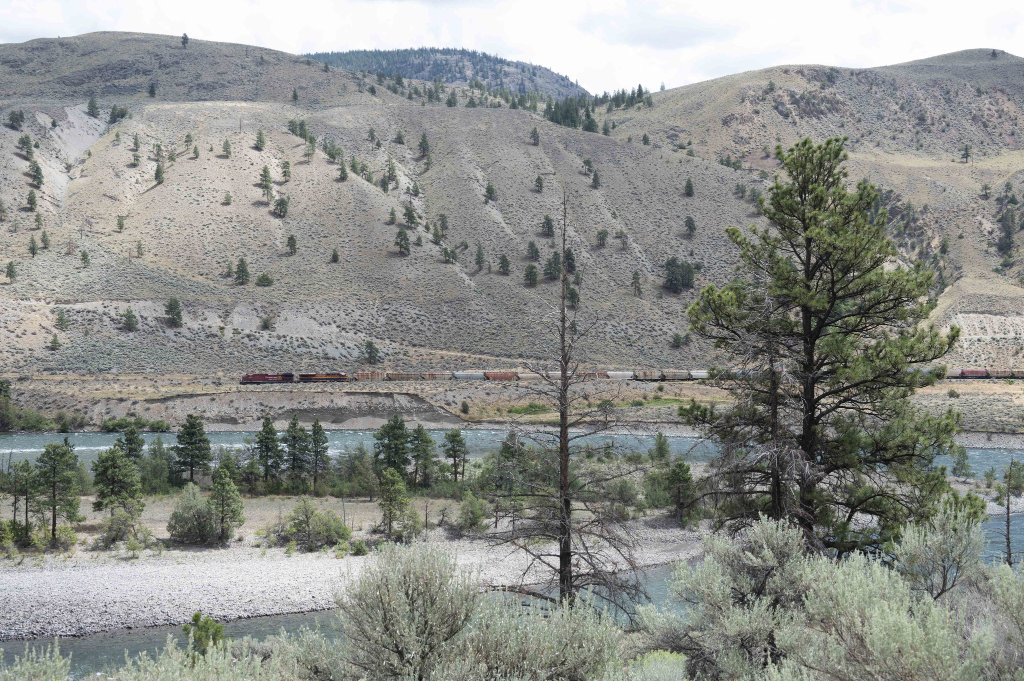 In den Tälern und Schluchten des Thompson und der Frazer River, die an beiden Ufern von Eisenbahngleisen begleitet werden, ändert sich das Landschaftbild dramatisch und für die Nacht bleibt nur ein Platz in einem alten Steinbruch, wo herunterpolternde Steine nicht gerade einen entspannten Schlaf zulassen