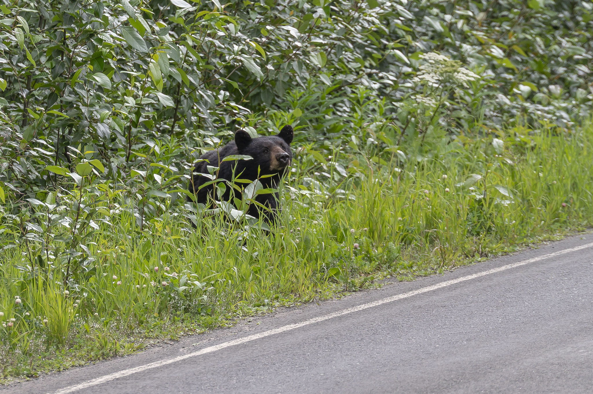 Bären sind hier einfach ein Dauerthema und wie man mit ihnen und seiner eigenen Sicherheit umgeht. Einige habe ich auch aus nächster Nähe zu Gesicht bekommen, glücklicherweise waren sie immer kooperativ, obwohl die Bärenmütter teilweise recht unentspannt geschnauft haben, womit sie ihren Nachwuchs in die Bäume trieben. Biber, Füchse und angriffslustige Kragenhühner haben meinen Weg auf dem Cassiar Highway gekreuzt, wobei ich Augenzeuge wurde, wie die Taktik der Kragenhühner, ihre frisch geschlüpften Küken durch Scheinattacken zu beschützen gegenüber schweren Pickups tödlich enden kann.