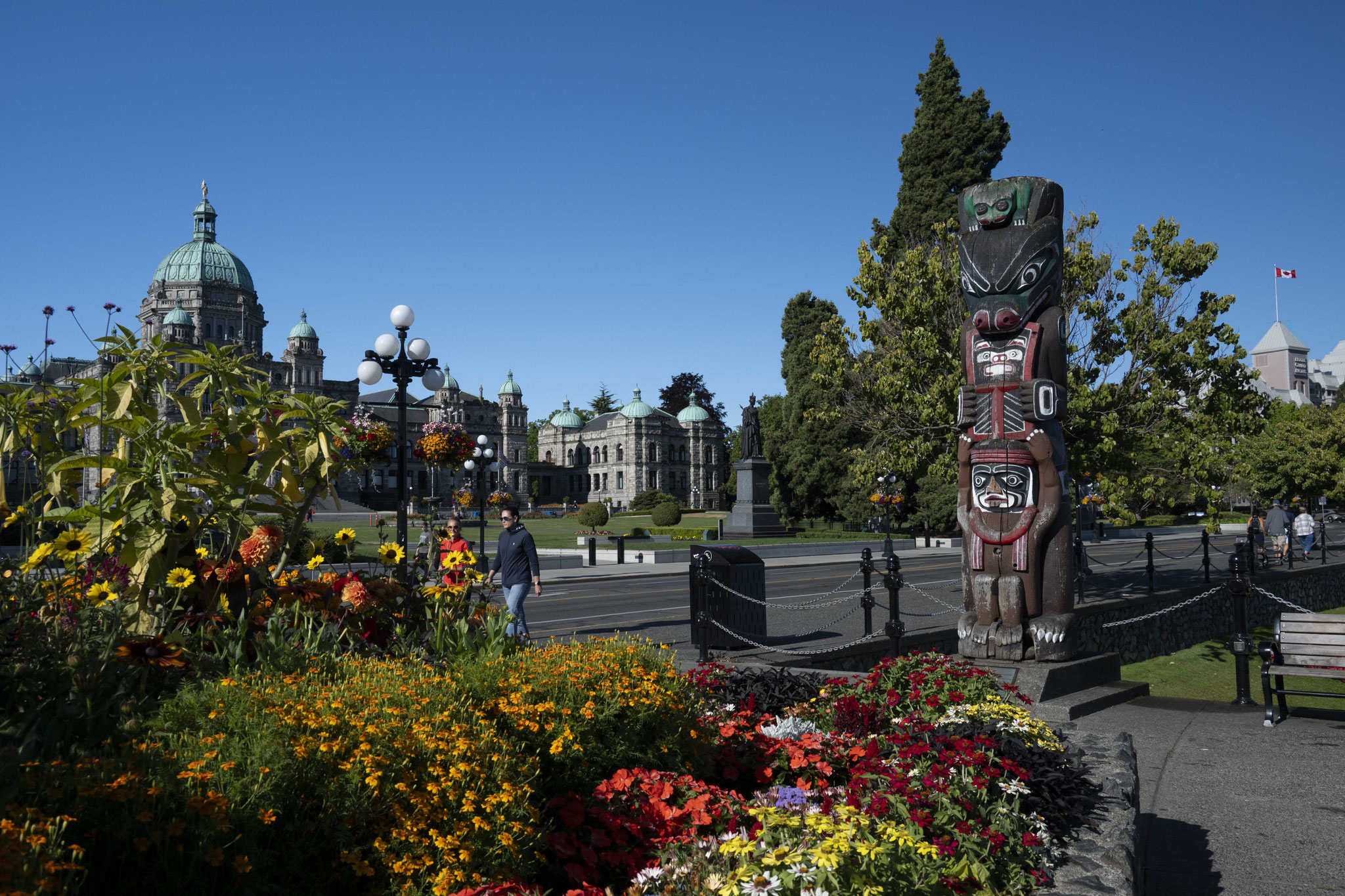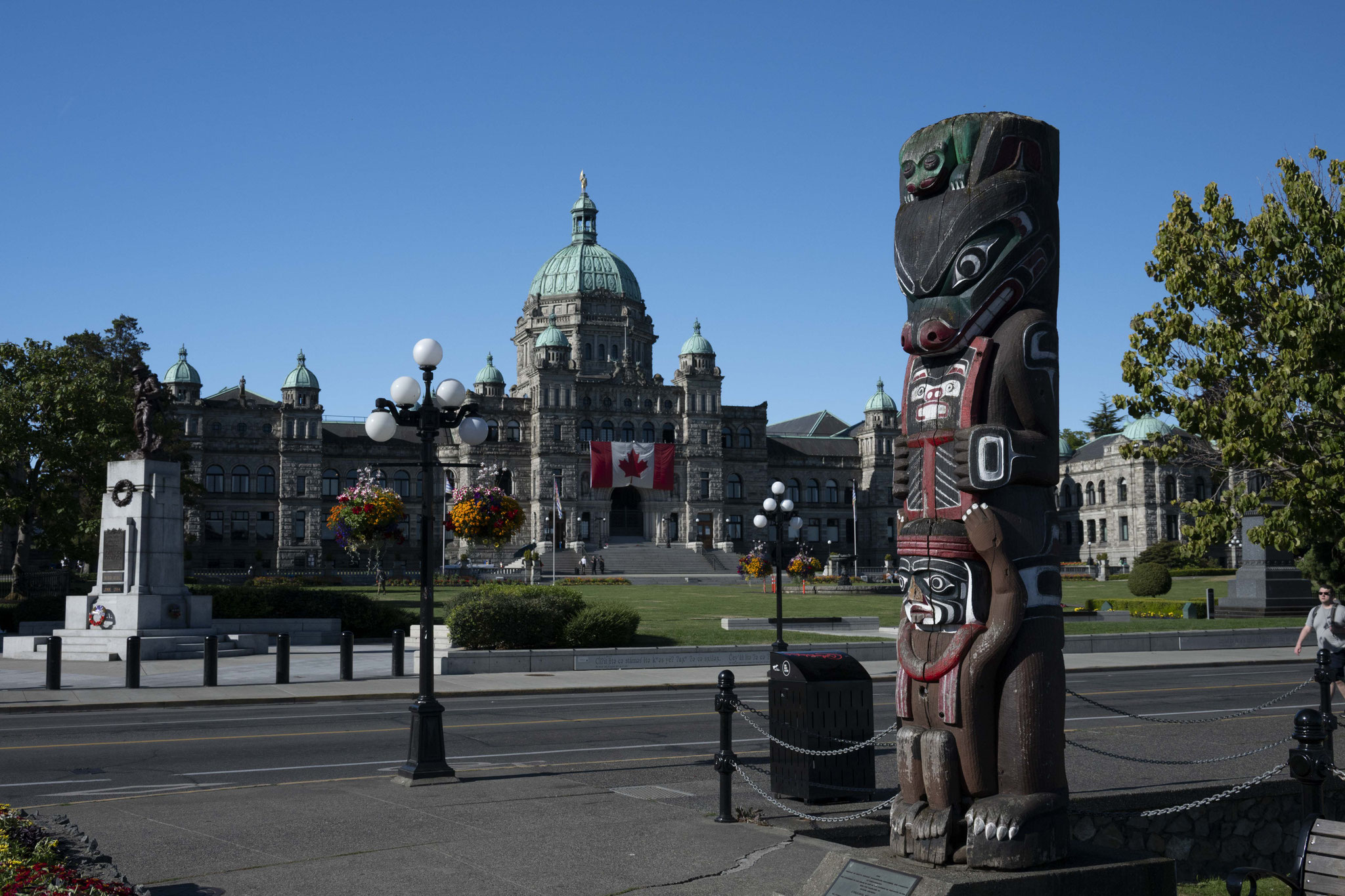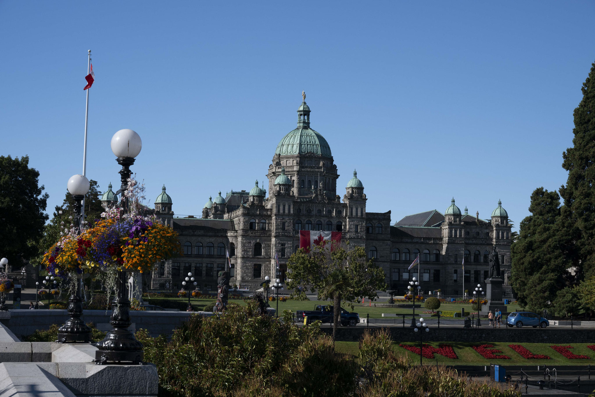 Von Twawwassen setzen wir mit der Fähre nach Victoria, der Hauptstadt der Provinz British Columbia über. Die Stadt ist Kontrastprogramm zu Vancouver – ähnlich wie der Unterschied zwischen Toronto und Ottawa (nur kleiner). Teilweise wirken die Gebäude und insbesondere das Parlament very British. Der Stadtkern ist extrem herausgeputzt und man hat das Gefühl, dass die Uhren hier anders gehen.