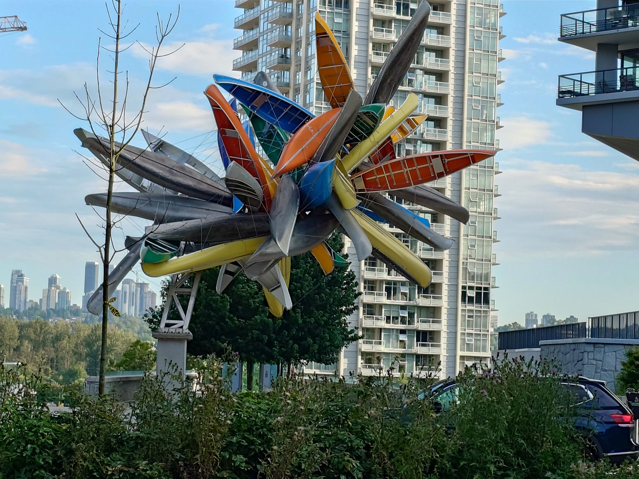 Erstmals auf der Reise kommt das Navi zum Einsatz und weitgehend auf Nebenstraßen erreiche ich Hochbrücke über den Frazerriver und bin dann mitten im Großstadtverkehr Vancouvers angekommen. Da es bereits auf den Abend zugeht, ist der Berufsverkehr weitgehend durch und ich fahre mehr als 20km teilweise auf dem Seitenstreifen autobahnähnlicher Straßen ohne einmal abbiegen zu müssen bis in die Hochhausschluchten der Innenstadt. Jetzt noch ein paar Nebenstraßen und ich bin mit einen Tag Verspätung in der Unterkunft in Burnaby angekommen, wo ich von Susanne erwartet werde. Das Einzelzeitfahren hat ein Ende und ich nach 4500 km dringend eine Pause nötig, die wir in den nächsten zwei Wochen gemeinsam in Vancouver und auf Vancouver Island – ohne Fahrrad – verbringen werden.