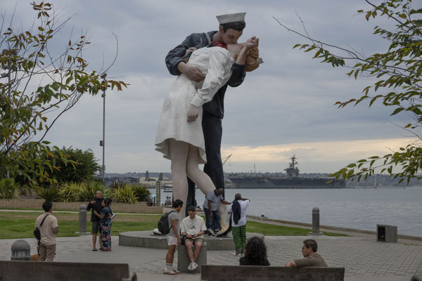 Letzte Station auf meinem Weg durch Kalifornien und damit auch der Schlusspunkt in den USA ist San Diego, unmittelbar an der Grenze zu Mexiko. Kurz vor der Stadtgrenze komme ich durch La Jolla, wo sich in der Bucht Seelöwen und Seehunde tummeln und man sogar mit ihnen schwimmen kann. Selbst mir rückt ein Seelöwe bis auf Kontakt mit meinen Füßen auf der untersten Stufe der Treppe zum Strand auf die Pelle. Dazu kommen noch viele Seevögel und ein reges Unterwasserleben. Ich mag mein Fahrrad und meine Wertsachen bei so vielen Menschen nicht unbeaufsichtigt irgendwo liegenlassen, deswegen verzichte ich auf das Bad in der (Seelöwen-)Menge und auch eine Paddeltour in der Bucht und durch die Felshöhlen.