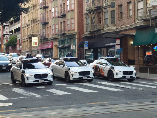 Es gibt aber auch eine andere Variante, sich die in der Stadt fortzubewegen, die ich zuerst nicht richtig einordnen kann. Ich sehe viele Autos, die rundum mit Scannern ausgestattet sind und denke erst, dass hier wieder einmal die Straßen aufgenommen werden. Falsch! Hier wird autonom gefahren. Es müssen hunderte Fahrzeuge – fast ausschließlich Jaguar – sein, die ganz selbstverständlich im dichten Stadtverkehr unterwegs sind. Nie sitzt jemand am Steuer, meistens sitzt ein Fahrgast auf dem Beifahrersitz und manchmal kommt ein Auto um die Ecke, in dem niemand sitzt, hält an, nimmt Passagiere auf und fährt wieder los. Wir sind so weit hinterher!