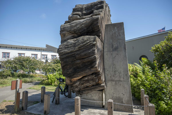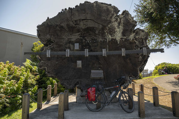 Auch in Fort Bragg hat man sich an der Vernichtung der alten Redwoods beteiligt - aber Dank des Engagements einiger Frauen auch eine Teil retten können