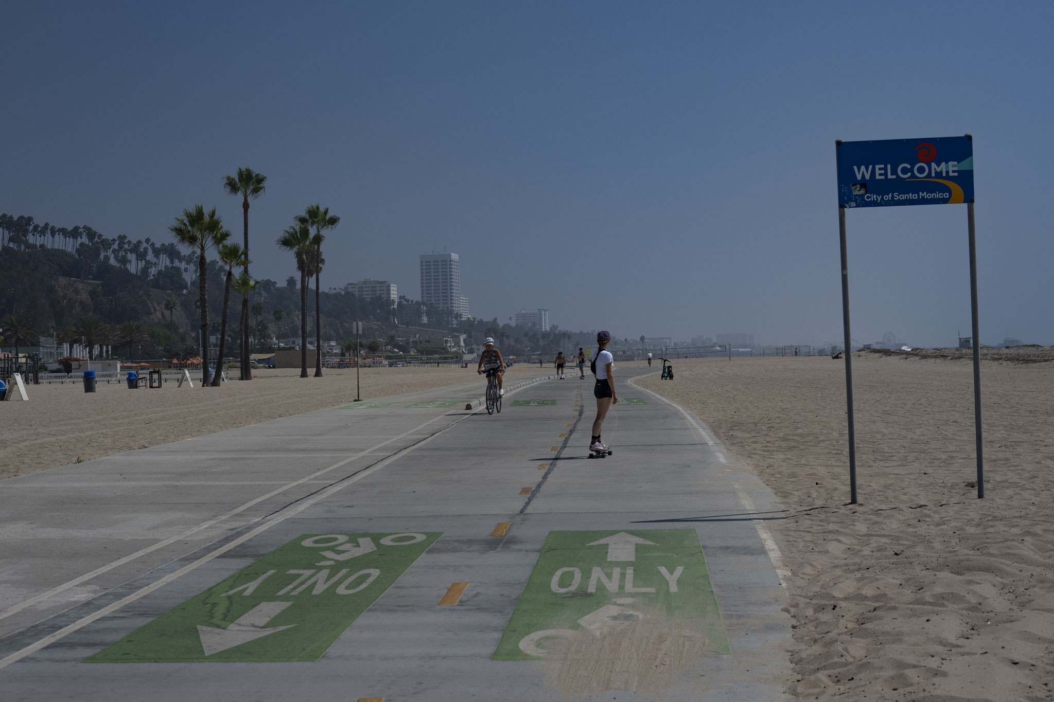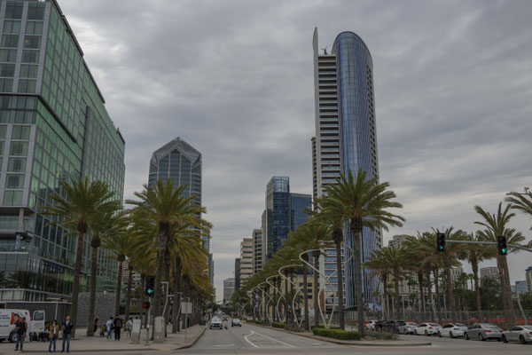 Um weiter in Richtung Süden zu fahren, muss ich einmal durch ganz LA, was allerdings, anders als die Touren in der Stadt, mit dem Fahrrad überhaupt kein Problem ist, denn man fährt überwiegend auf hervorragenden Radwegen direkt am Strand und kommt dann durch die gepflegten Vororte, wie Long Beach, wo der Name Programm und der Strand noch verwaister als die Strände auf dem Weg in die Stadt ist. Bis nach San Diego sind es nur wenige Tage und es reiht sich jetzt fast in geschlossener Reihe ein Küsten- und Badeort an den anderen. Surfer bestimmen das Bild an den Stränden und cooler als auf einem E-Bike im Neopren-Anzug und einem Surfbrett an der Seite zum Strand zu düsen, geht einfach nicht. Da kann ich nicht mithalten.