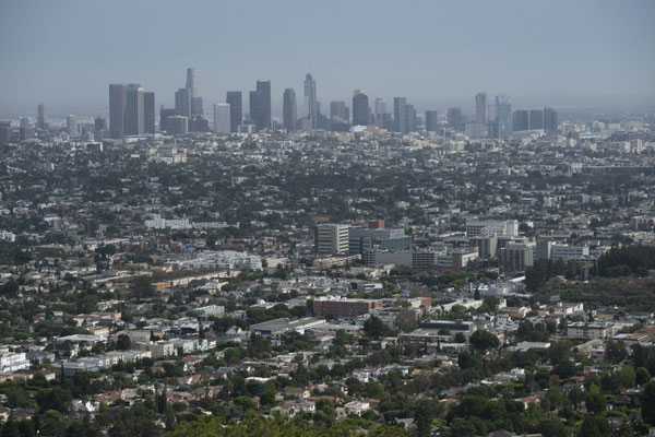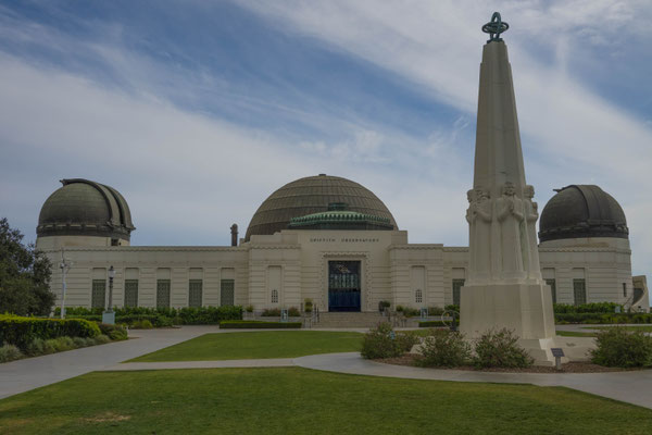 Nach so viel Ernüchterung kann mich nur noch die Kultur retten. Am zweiten Tag entschließe ich mich, das Getty Museum zu besuchen und bin von dieser Anlage begeistert. Man erreicht den Gebäudekomplex auf den Hügeln über der Stadt mit einer eigenen Tram, alles ist wie aus dem Ei gepellt und der Besuch ist kostenlos. Was hier mit den Mitteln einer Stiftung des einst reichsten Menschen der Welt geschaffen wurde, macht noch einmal deutlich, wie unvorstellbar für einen Normalverdiener diese Dimensionen von Reichtum sind. Und dabei habe ich noch nicht einmal von der Kunstsammlung im Innern der Gebäude gesprochen, weil ich dazu zugegebenermaßen auch zu wenig Ahnung habe. Schlusspunkt ist dann noch ein Besuch im Griffith Observatory, von wo man einen sehr guten Blick über die Stadt hat – wenn das Wetter mitspielt. Allerdings zieht nachmittags eine Wolkendecke auf. Keine gute Sicht, kein Sonnenuntergang über LA und kein Blick durch das Teleskop in die Sterne, also noch einmal zwei Stunden Bus fahren, um nach Santa Monica zurückzukommen.