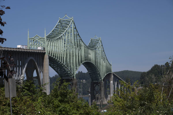 Neben den Leuchttürmen gibt es entlang des Highway 101 zahlreiche faszinierende Brückenbauwerke, mit denen Flüsse über tiefe Buchten überwunden werden. Überwiegend stammen sie noch aus der Zeit, als die Küstenstraße entstanden ist und wirken auch deswegen so gänzlich anders, als modere Brücken. Das Überqueren der meist engen Brücken ist nicht immer vergnügungssteuerpflichtig, wenn einen Autofahrer sehr eng überholen und man von einigen im Vorbeifahren auch noch beschimpft wird.