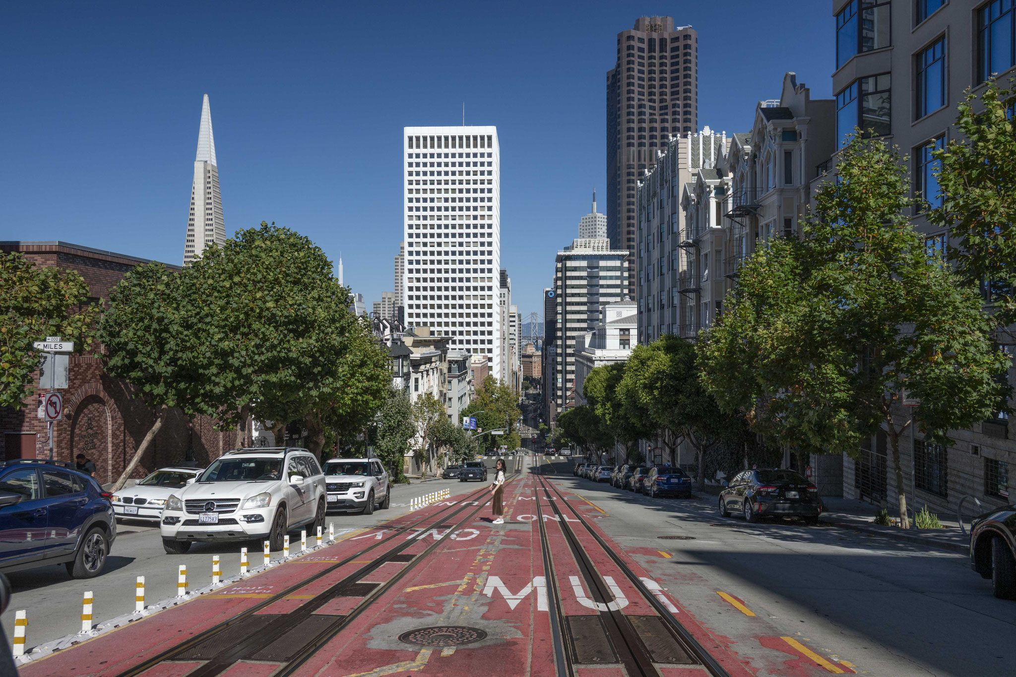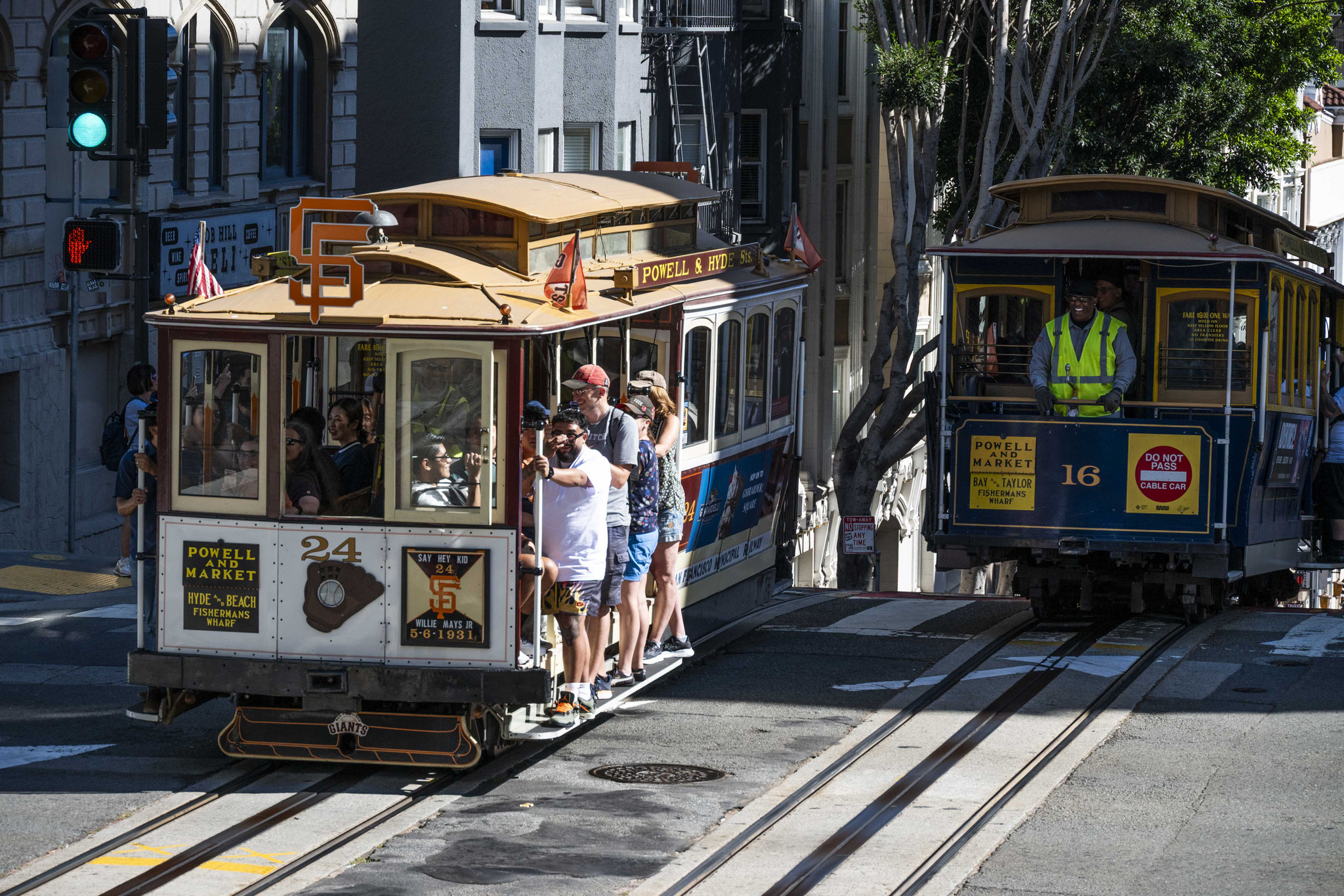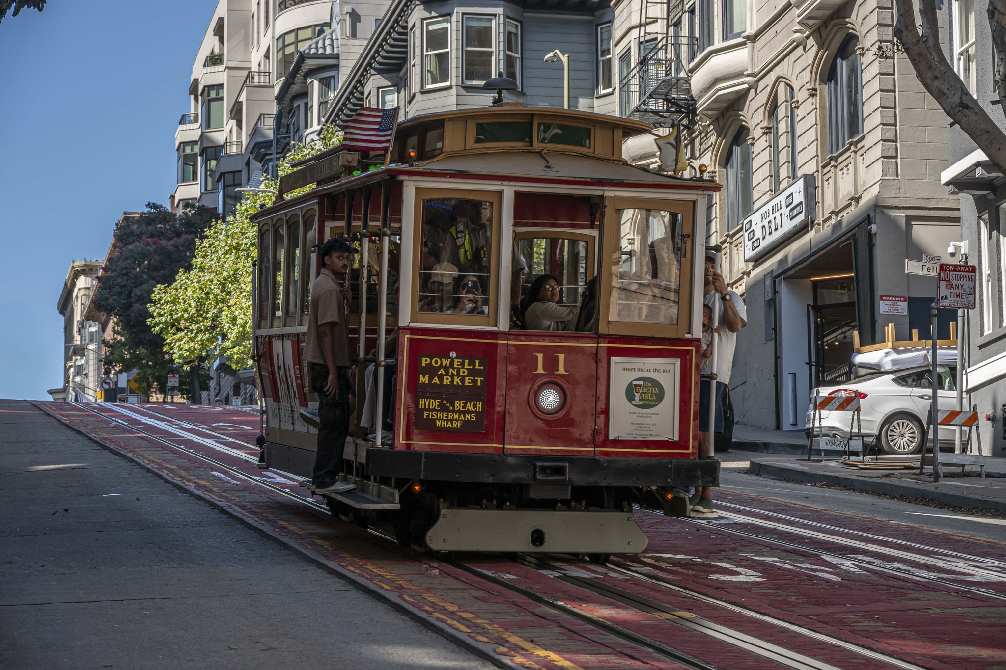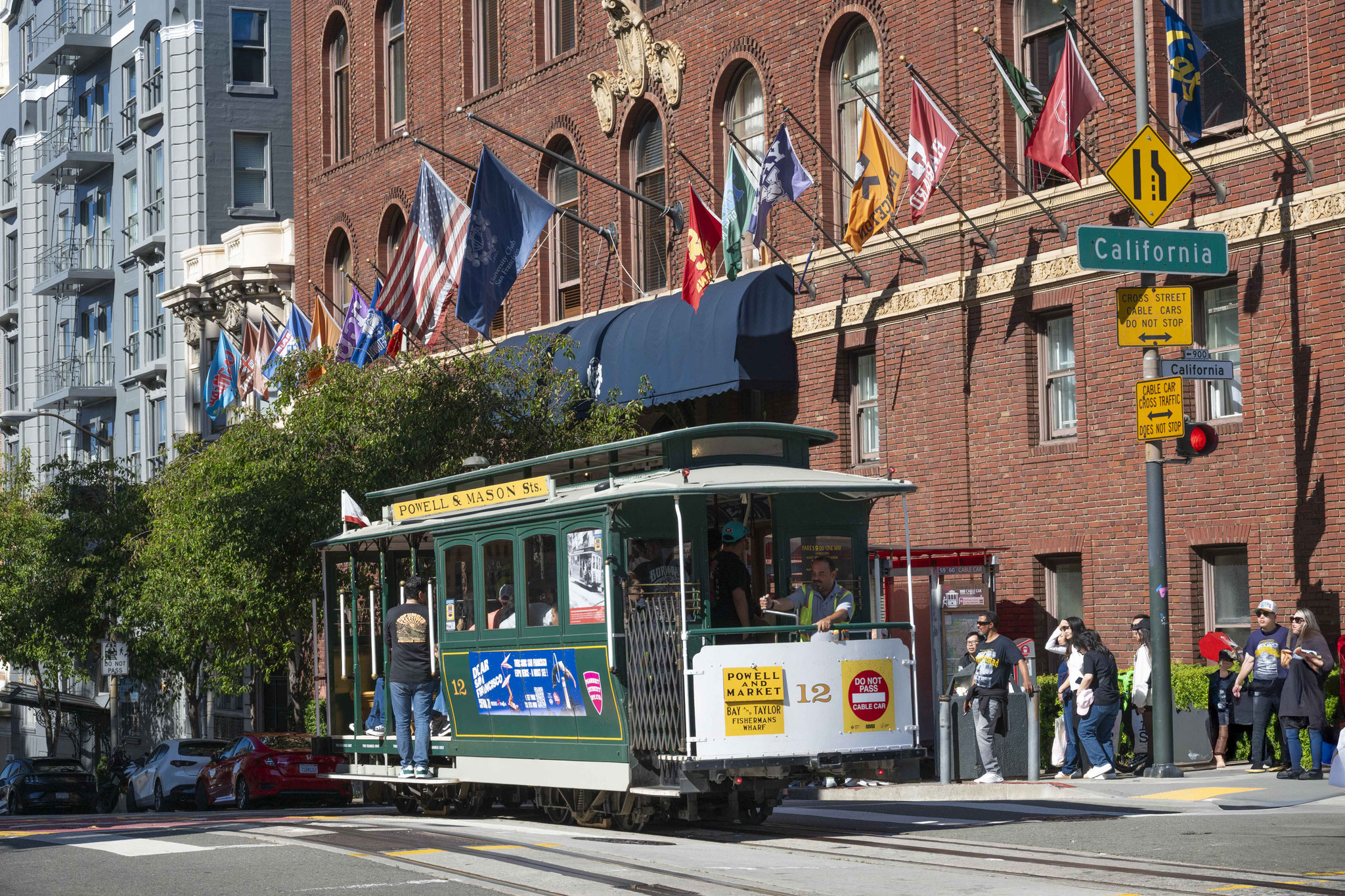 Die Lage des Hotels ist ein Glücksgriff. Gleich um die Ecke fahren die berühmten Cable Cars die steilen Straßen rauf und runter, Chinatown, Union Square, das Bankenviertel, Fisherman’s Wharf und viele andere markante Punkte kann ich locker zu Fuß erreichen. Wobei man „locker zu Fuß“ in dieser Stadt relativieren muss. Es gibt Straßen mit bis zu 40% Steigung und die Gehwege sind teilweise als Treppen angelegt – wirklich keine Bedingungen, um mit dem Rad unterwegs zu sein. Drei Tage sind zu wenig, um alles zu sehen und ich muss mich entscheiden. Natürlich fahre ich mit dem Cable Car und natürlich kaufe ich ein Ticket für die Hop-on-Hop-off-Busse, um auch entferntere Orte zu sehen und auch die folgenden Bilder sind nur eine kleine Auswahl.