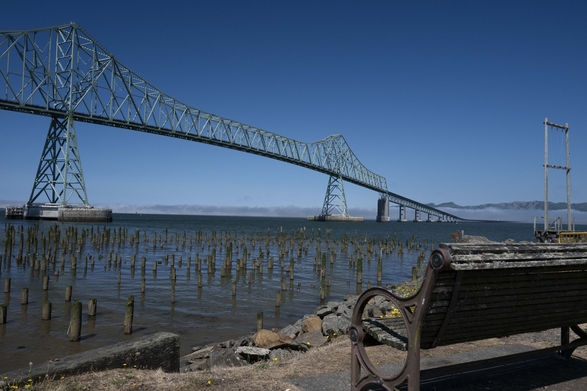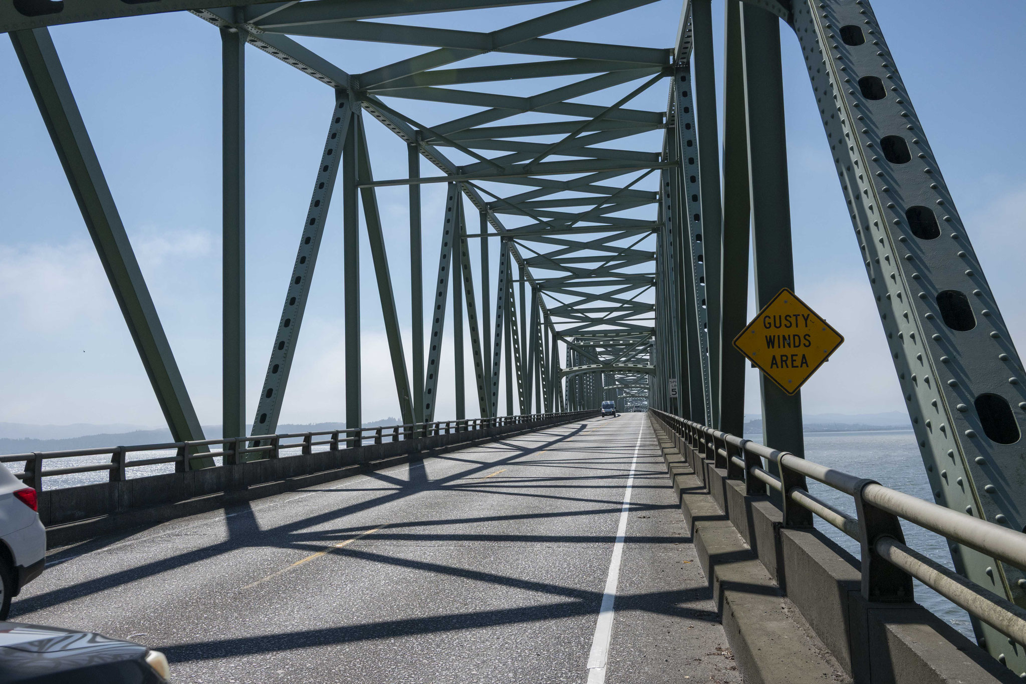 Nach einer letzten Übernachtung an einem der vielen langen Sandstrände bei Cape Disapointment verlasse ich Washington State. Der Weg führt über die Astoria-Megler-Bridge, die mit knapp sieben Kilometern Länge den Columbia River quert. Nicht ganz ohne Bauchgrummeln fahre ich auf die Brücke zu, von der ich gehört hatte, dass die Straße ein Metallgitter ist, kaum Seitenstreifen vorhanden sind und Seitenwind für Radfahrer gefährlich werden. Tatsächlich ist der Straßenbelag aus Beton, die Seitenstreifen und schmal aber noch okay und der Wind schräg von hinten hat geholfen. Ich bin aber der Überzeugung, dass die Brücke von den Fischern mitinitiiert und -finanziert wurde, um Kormorane umzubringen. Noch nie habe ich so viele dieser Vögel überfahren auf einer Straße gesehen.