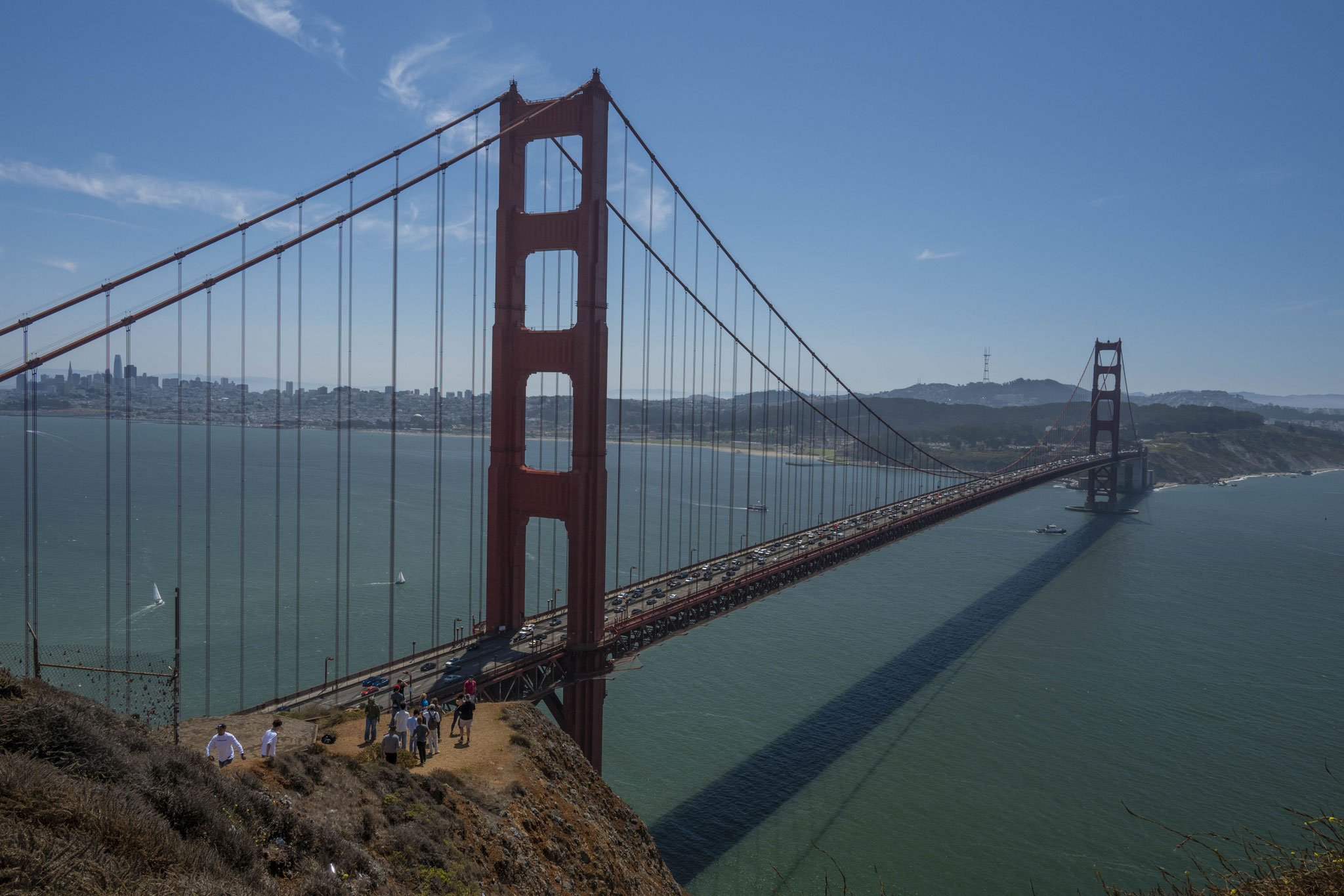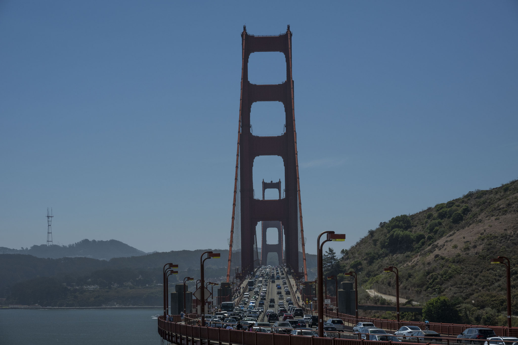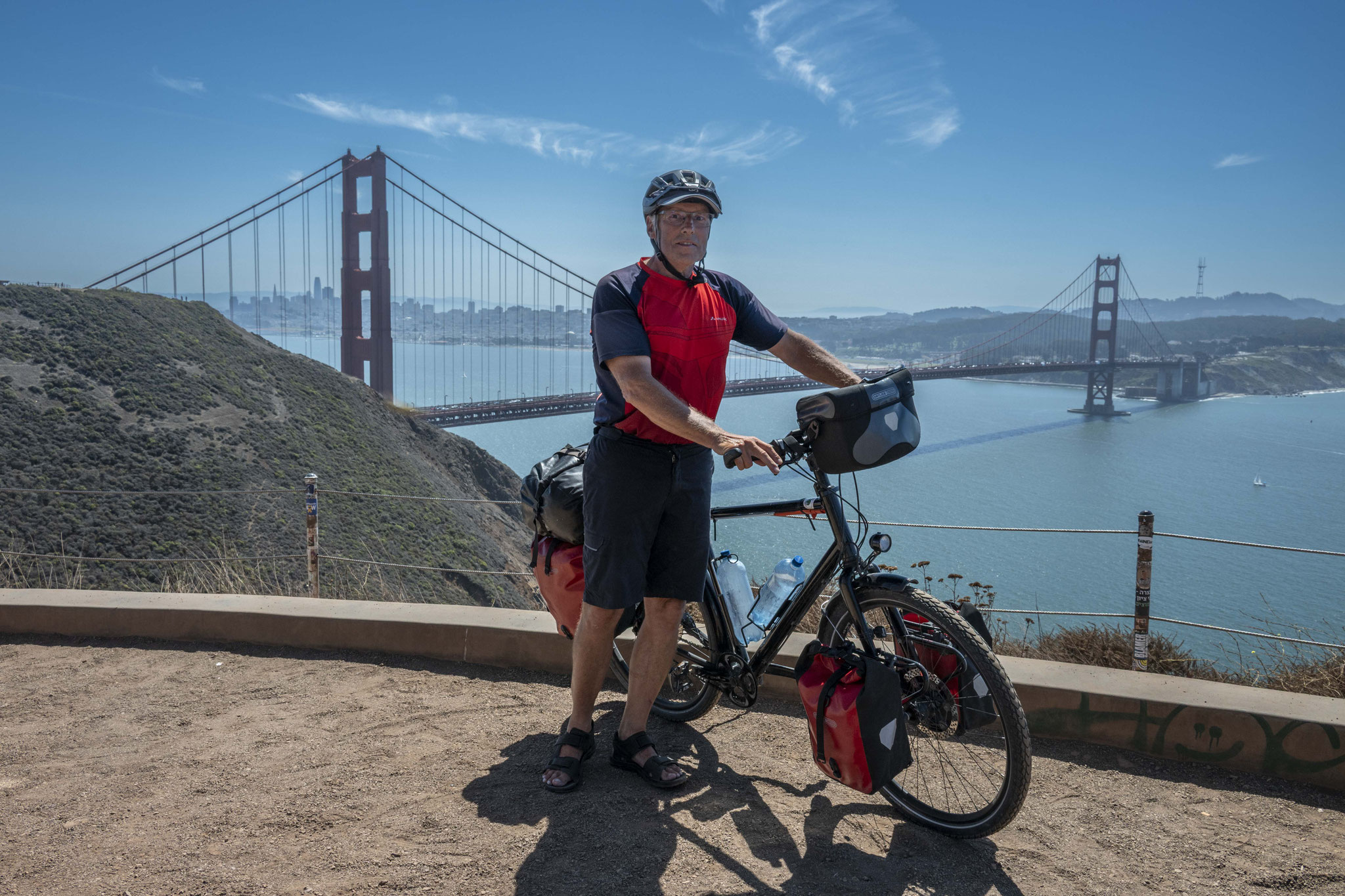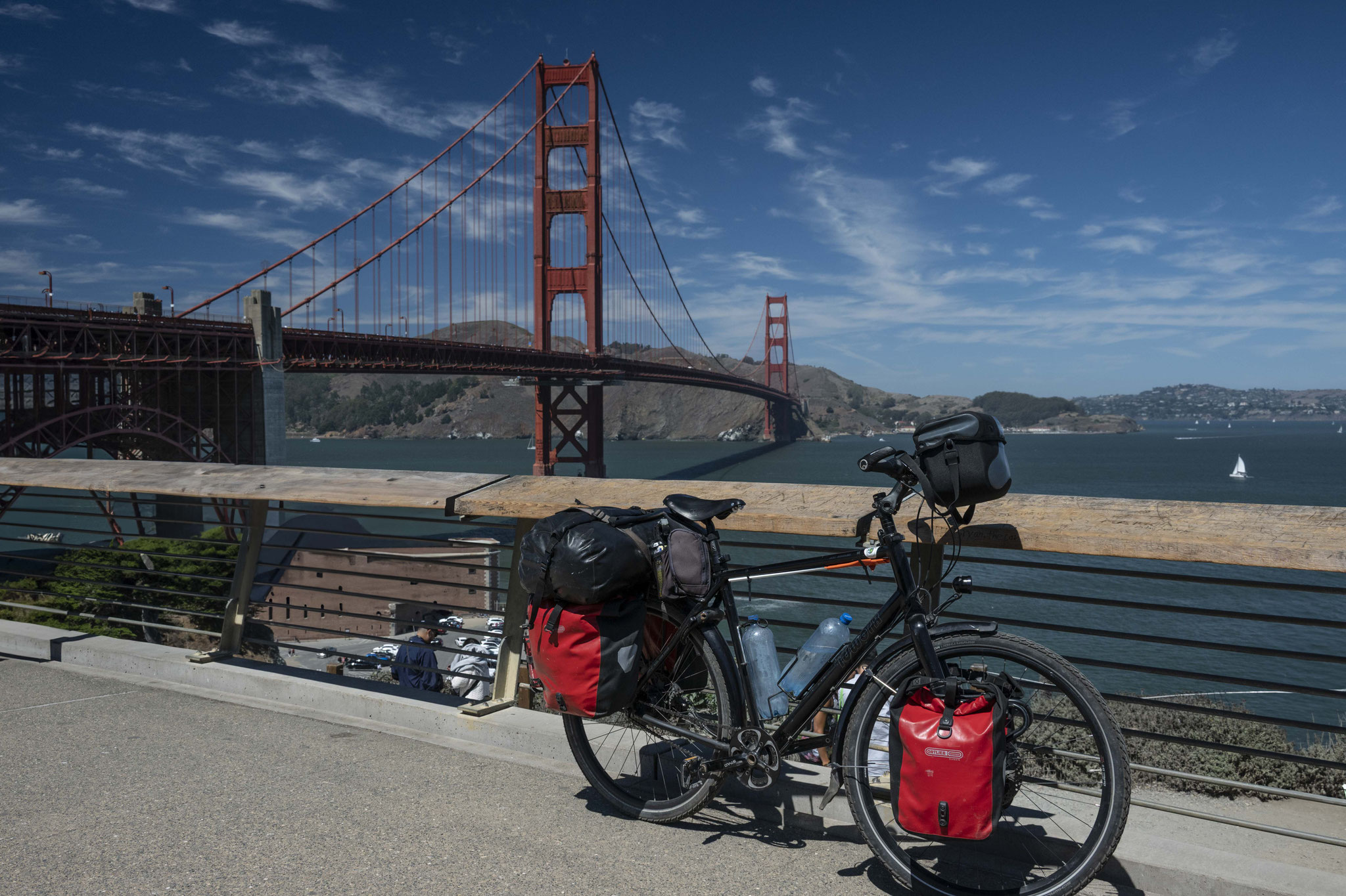 Der 1. September ist in Nordamerika Labour Day und gleichzeitig das Ende der Sommerferien – the holy weekend. In diesem Jahr fällt er auf einen Montag und damit steht ein langes Wochenende bevor, als ich San Francisco erreiche. Nicht nur auf dem letzten Campingplatz drängen sich ca. 20 Radfahrer, die die freien Tage nutzen, auch auf den Radwegen herrscht am Sonnabend Hochbetrieb, meistens Rennradfahrer, die mir aus der Stadt entgegenkommen – es sind hunderte. Und dann stehe ich vor dem wohl markantesten und bekanntesten Punkt der gesamten Reise: der Golden Gate Bridge. Nicht planbar, nicht berechenbar, einfach dem Zufall und dem Glück geschuldet liegt sie in strahlendem Sonnenschein vor mir, was bei dem häufigen Seenebel keine Selbstverständlichkeit ist. Nach den obligatorischen und wenig originellen Fotos und einem Hotdog, der von Mexikanern für 10 Dollar aus dem Kofferraum ihres Autos heraus verkauft wird, mache ich mich bei leichtem Seitenwind auf den ca. 2,7km langen Weg über die Brücke. Anders als bei vielen anderen Brücken, gibt es auf der einen Seite einen Gehweg und auf der anderen Seite einen Radweg, sodass man unbeeinträchtigt vom Autoverkehr die Fahrt über die Meeresenge genießen und entspannt Fotostopps einlegen kann. Auf der anderen Seite ist das Licht auf die Brücke noch besser und es folgen einige weitere Fotos, bevor ich auf guten Radwegen am Strand und zahlreichen Sehenswürdigkeiten vorbei ins Stadtzentrum fahre, wo ich ohne Probleme und ohne extrem steile Berge mein Hotel erreiche und mein Rad für drei Tage im Hotelzimmer parke.