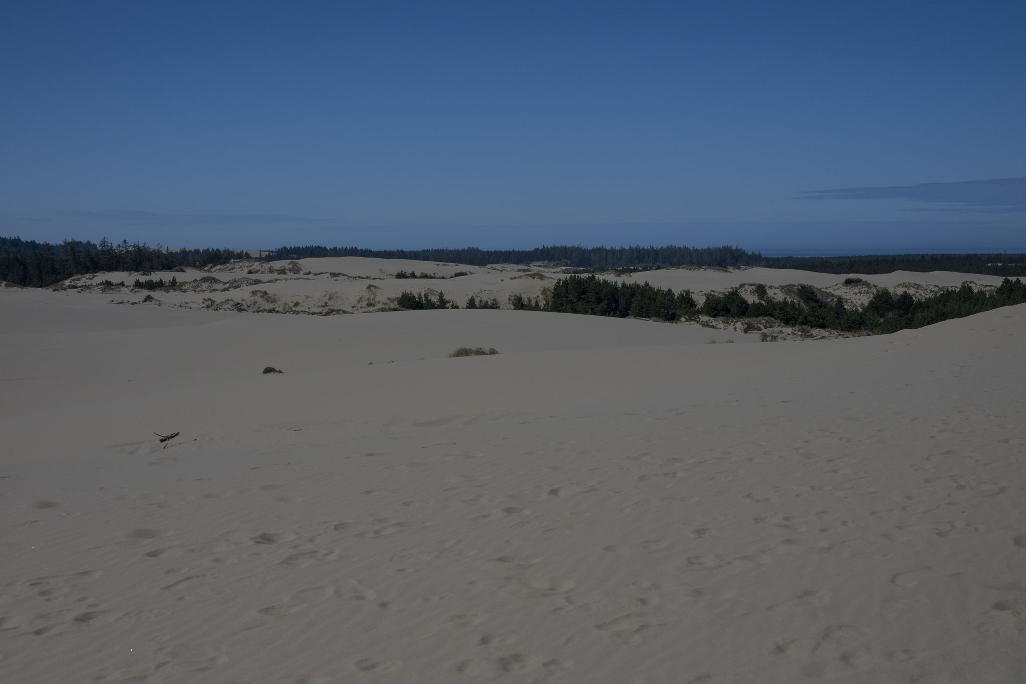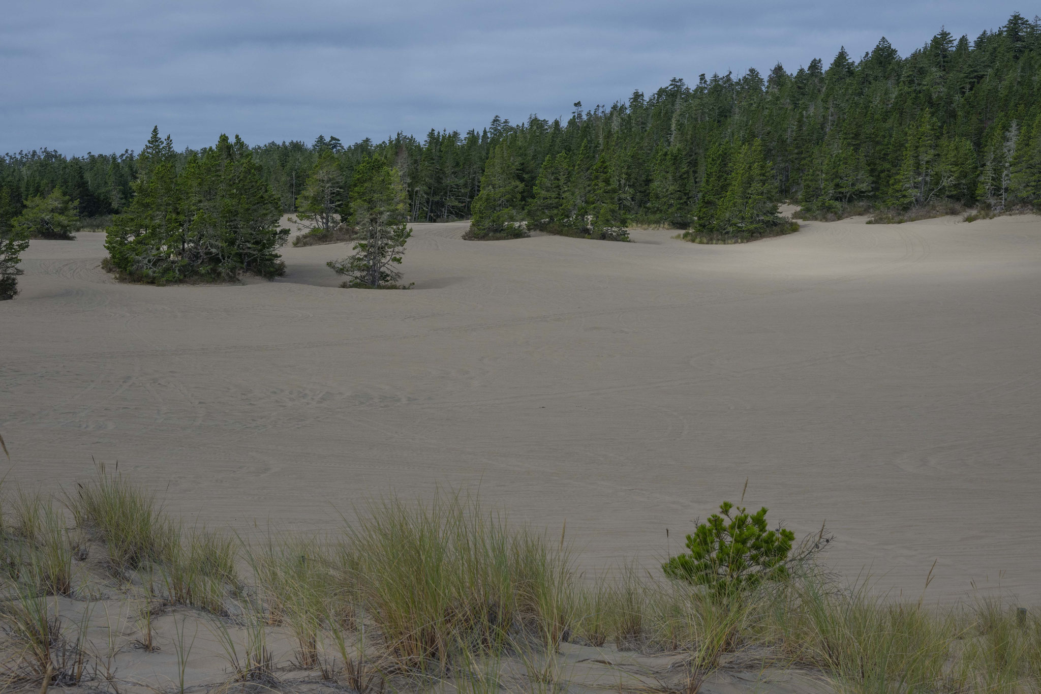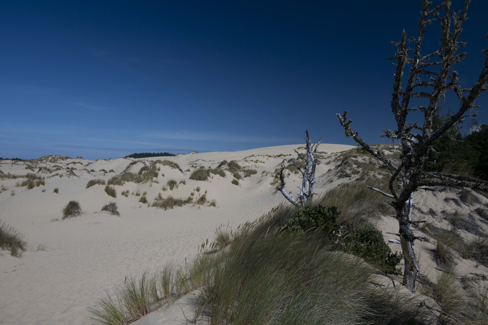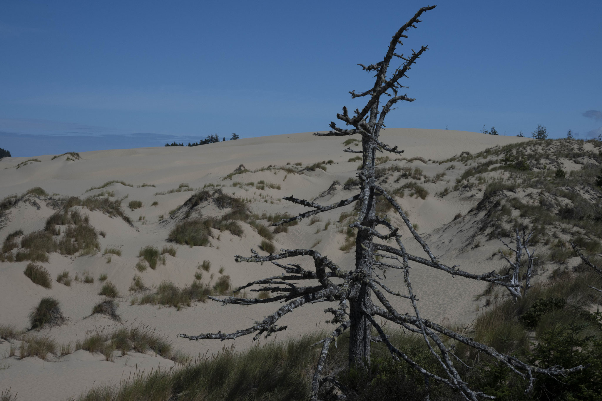 Die Küste ändert sich wieder einmal. Das Meer bekomme ich fast nicht mehr zu sehen, weil über eine Strecke von mindestens hundert Kilometer die mächtigen Oregon Sand Dunes die Sicht versperren. Eine riesige Sandkiste. Und was machen die Amerikaner? Sie holen ihre Spielzeuge (Quads – hier ATV genannt) raus und amüsieren sich damit im Sand. Nicht mein Fall. Einerseits gibt es hier strenge Naturschutzregeln, andererseits wird wilde Sau gespielt. Ich suche mir am nächsten Tag einen Bereich aus, wo man nur zu Fuß hineindarf, und mache mir dort ein Bild (oder auch ein paar mehr) von dieser bizarren Landschaft.