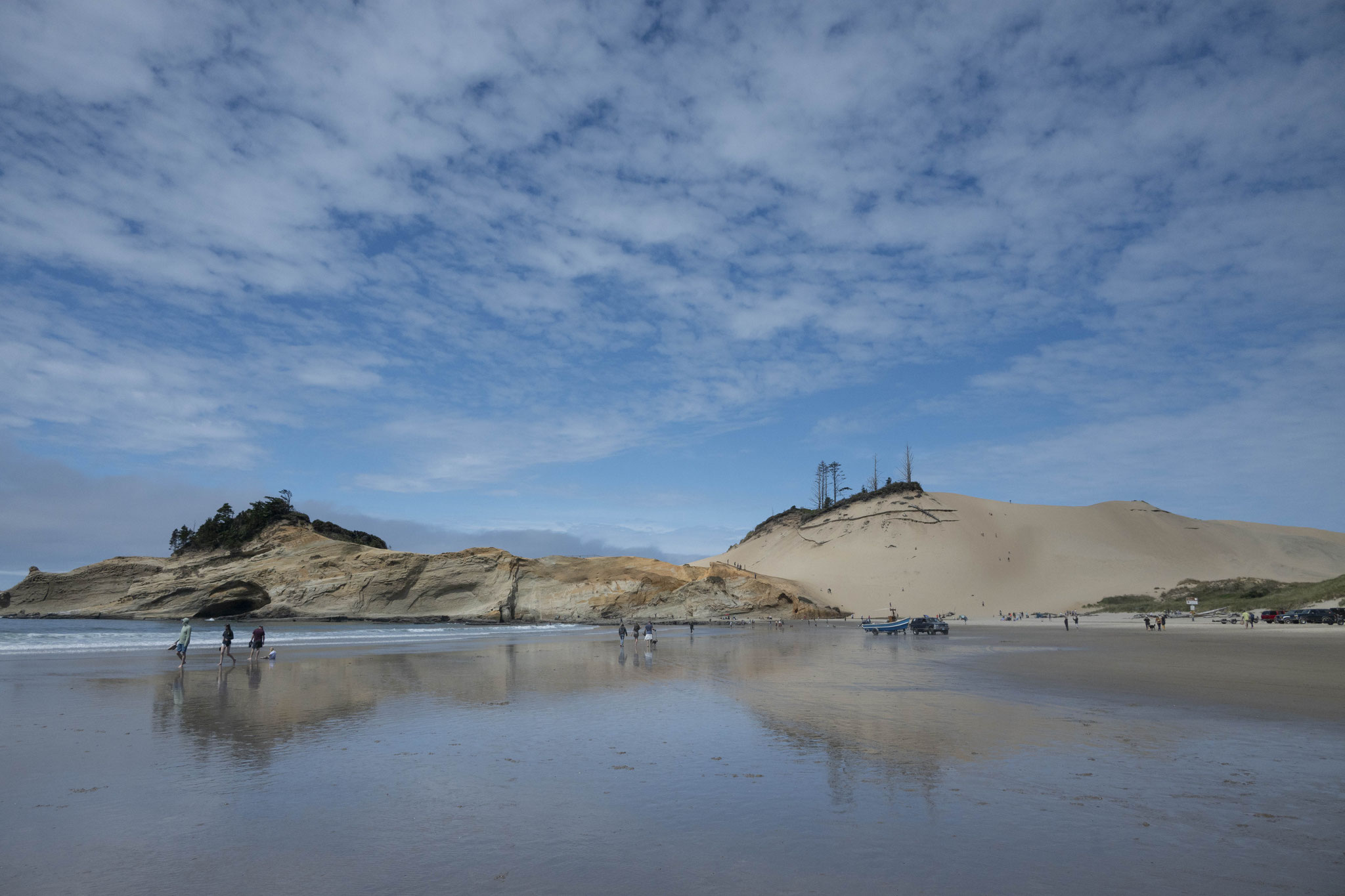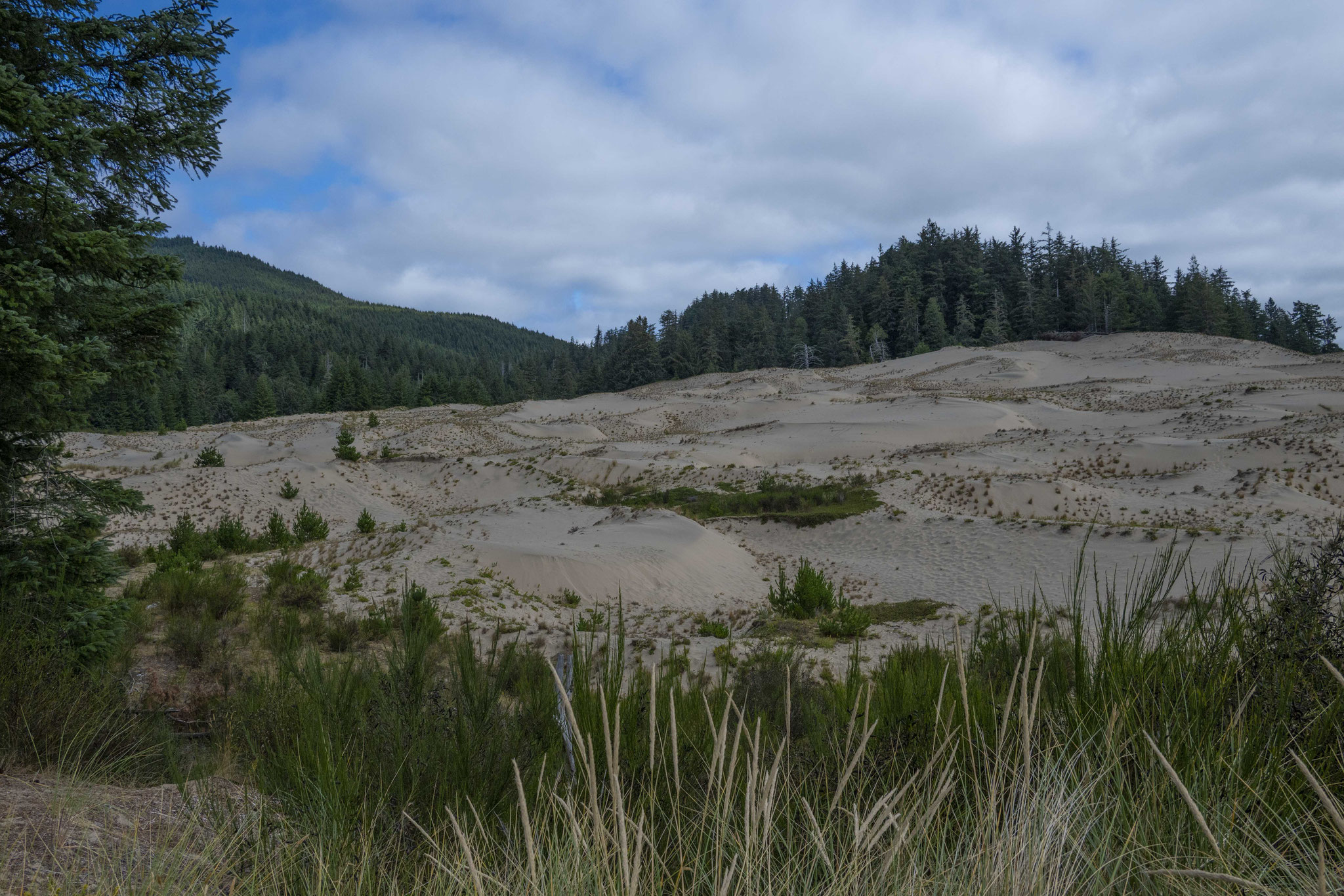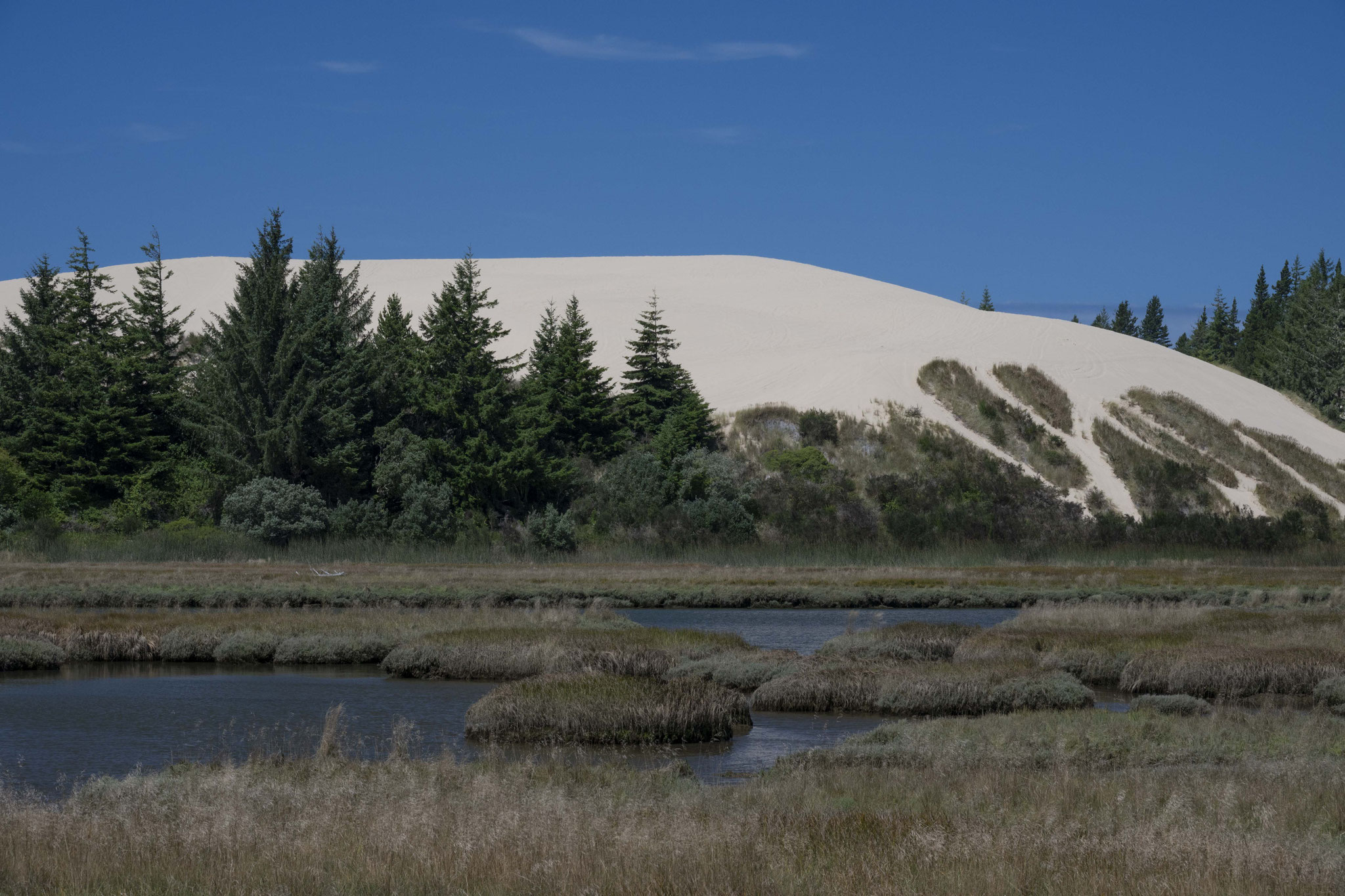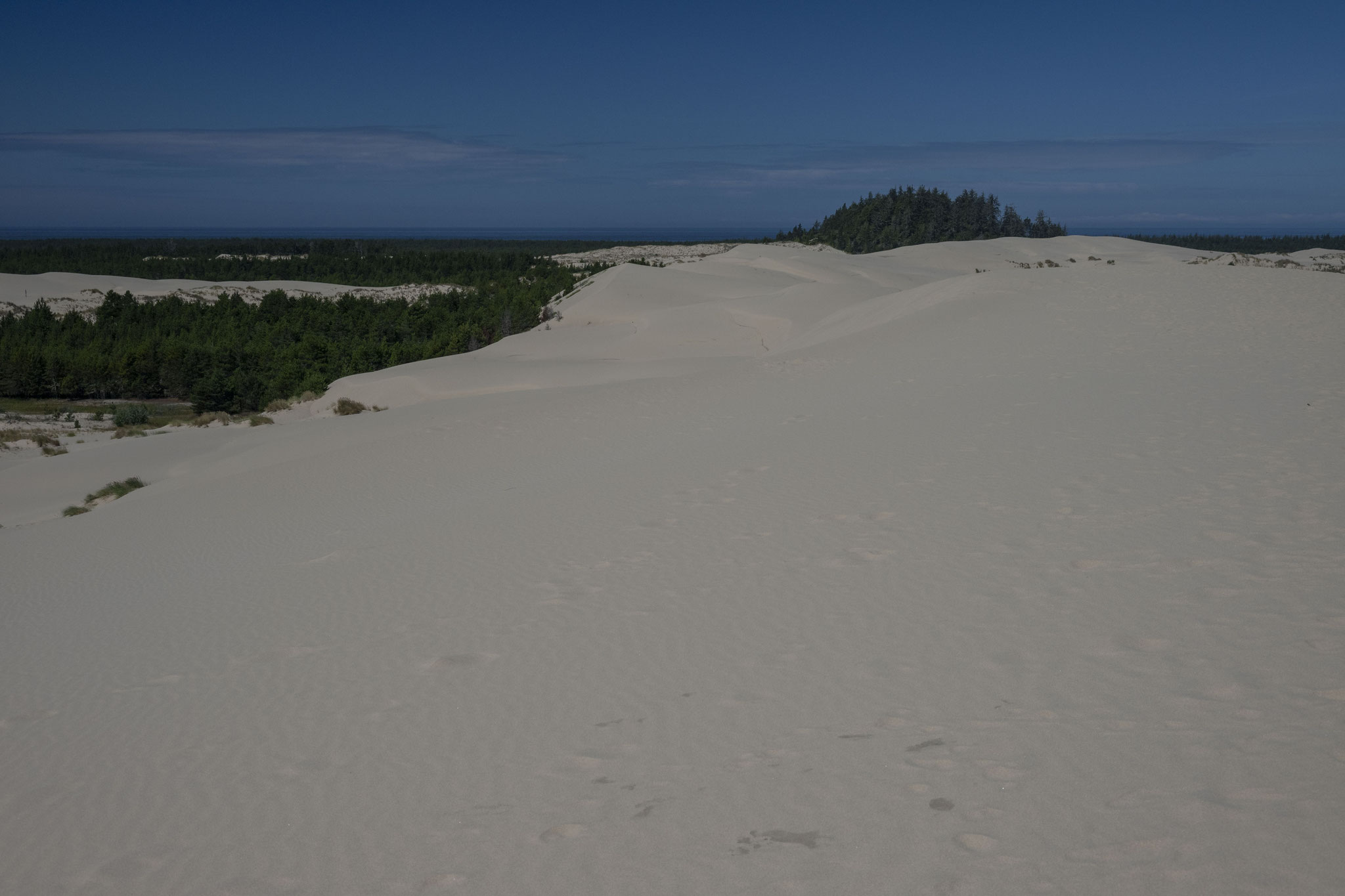 Die Küste ändert sich wieder einmal. Das Meer bekomme ich fast nicht mehr zu sehen, weil über eine Strecke von mindestens hundert Kilometer die mächtigen Oregon Sand Dunes die Sicht versperren. Eine riesige Sandkiste. Und was machen die Amerikaner? Sie holen ihre Spielzeuge (Quads – hier ATV genannt) raus und amüsieren sich damit im Sand. Nicht mein Fall. Einerseits gibt es hier strenge Naturschutzregeln, andererseits wird wilde Sau gespielt. Ich suche mir am nächsten Tag einen Bereich aus, wo man nur zu Fuß hineindarf, und mache mir dort ein Bild (oder auch ein paar mehr) von dieser bizarren Landschaft.