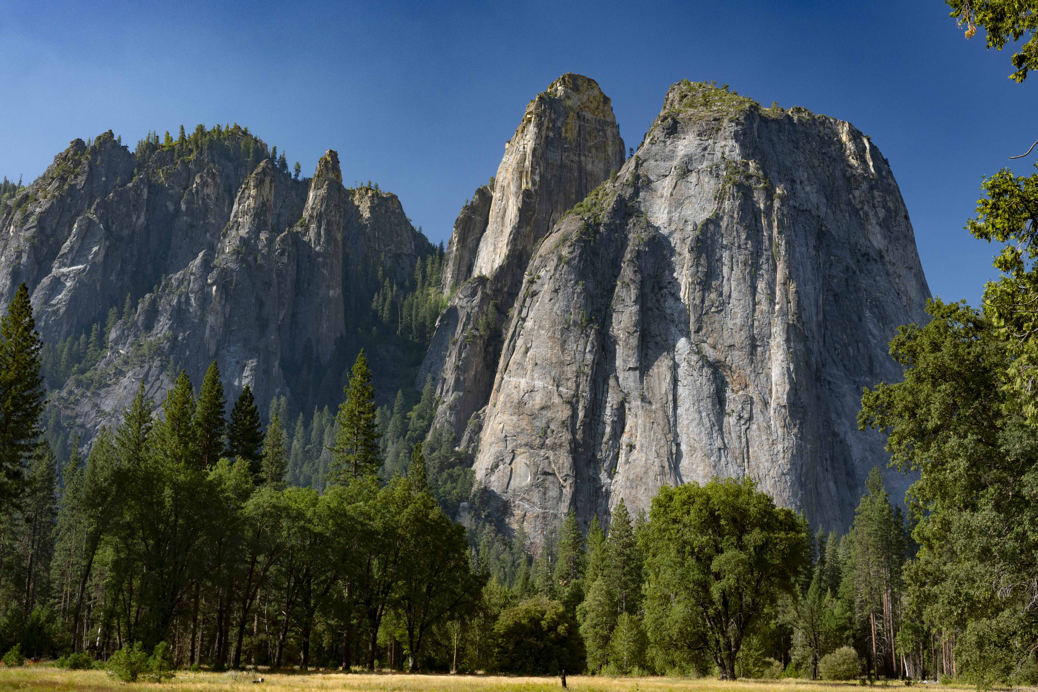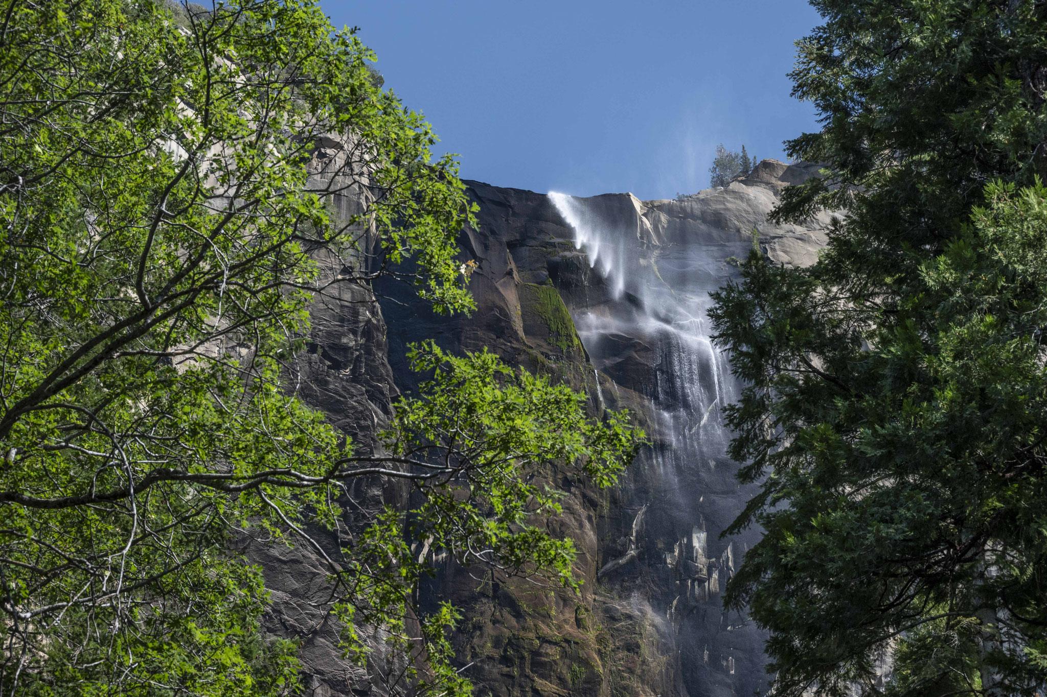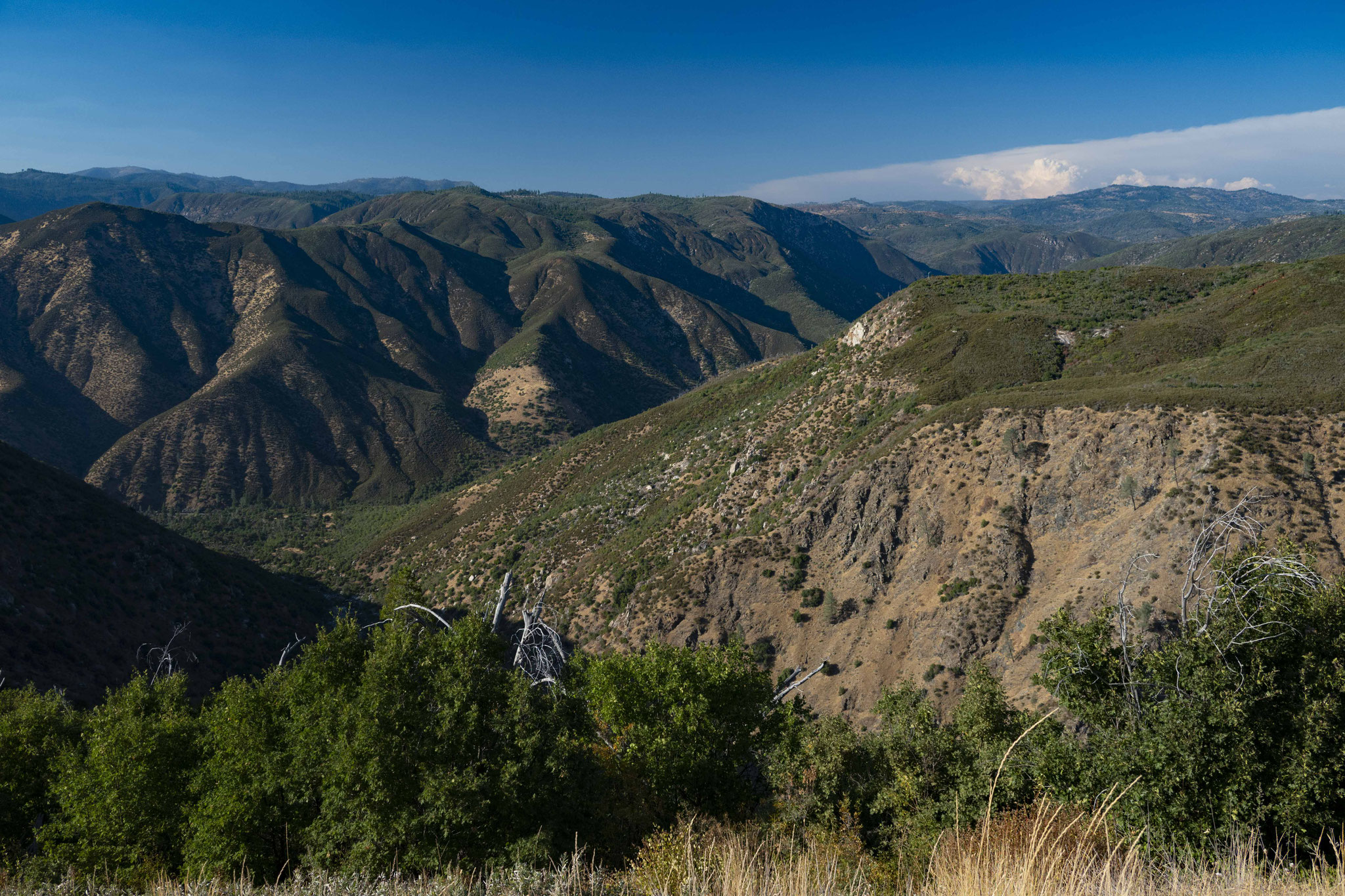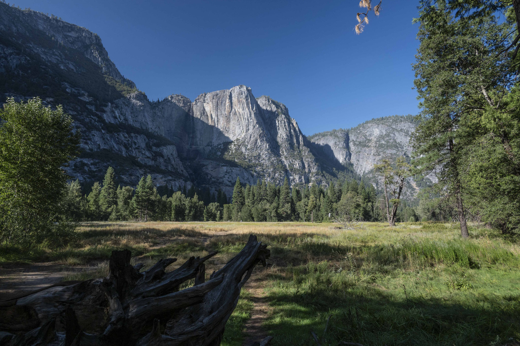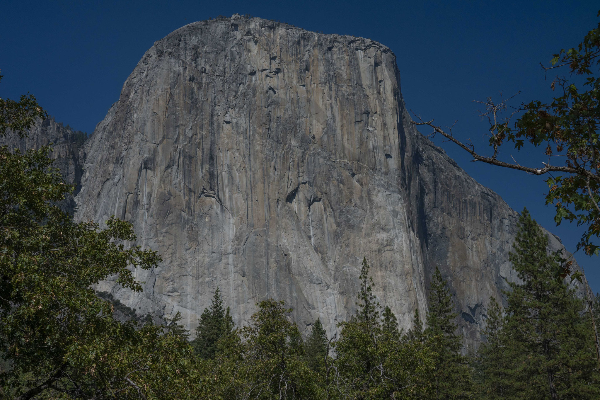 Am nächsten Morgen mache ich mich an den langen Anstieg ins Yosemite Valley, dem Herzstück des Nationalparks. Der Rauch der Waldbrände trübt die Sicht ins Tal bei sonst klarem Wetter stark und nimmt einem die Belohnung für die Mühen bis auf die Passhöhe. Auf der anderen Seite geht es dann 700 Höhenmeter ins Tal. Wie zu befürchtet, bin ich nicht der einzige Besucher im Tal – in diesem Jahr werden ca. 6 Millionen Touristen erwartet. Es herrscht Rummel. Allerdings ist die Natur auch spektakulär, nicht nur die ca. 1000 Meter hohen Granitwände von El Capitan und Halfdome, die das Ziel von Klettern aus aller Welt sind, sondern die Wasserfälle, die Berge, Flüsse und Wälder sind unglaublich schön und glücklicherweise hat es der Rauch auch nicht bis ins Tag geschafft. Natürlich kann man den Nationalpark so erst so richtig erschließen, wenn man auf den zahlreichen Trails wandert – das möchten meine Knie allerdings nicht. Also bleibe ich unten.