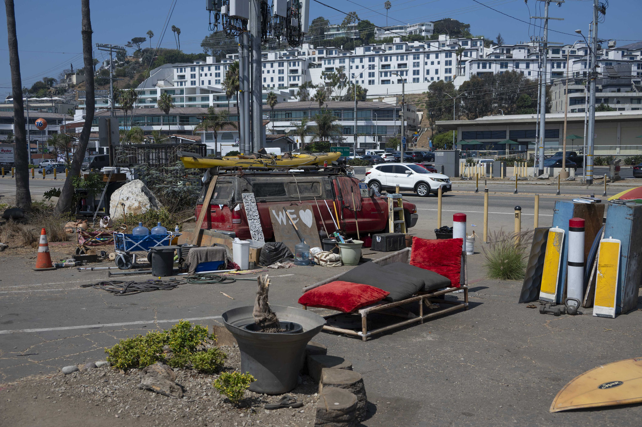 Die Orte an der Küste werden schicker sehen so aus, wie man sich Kalifornien aus dem Fernsehen vorstellt: Villen auf den Klippen, am Strand und in den Bergen, traumhafte Sandstrände, Bay Watch, Surfer… Nach Pismo Beach komme ich durch Santa Barbara, das allen Klischees gerecht wird und tatsächlich sehr schön und gepflegt ist. Je mondäner die Orte, desto schwieriger wird es allerdings für mich auch Möglichkeiten zu finden, mein Zelt aufzuschlagen. Wenn überhaupt, gibt es eher Wohnmobilstellplätze als Campingplätze. Deswegen habe ich keine Zeit, mir Santa Barbara näher anzusehen, denn die Dämmerung bricht bereits herein und ich habe noch keinen Platz für mein Zelt. Erst gegen 19.00 Uhr erreiche ich den State Park in Carpinteria und schlage dort in der Dunkelheit mein Nachtlager auf. Nach den vielen State Park Campingplätzen im Norden in toller Lage, sind es hier mehr und mehr nur noch Strände und Abstellmöglichkeiten für Wohnmobile direkt am Straßenrand. Dabei werden die Orte immer luxuriöser und die Namen klangvoller.