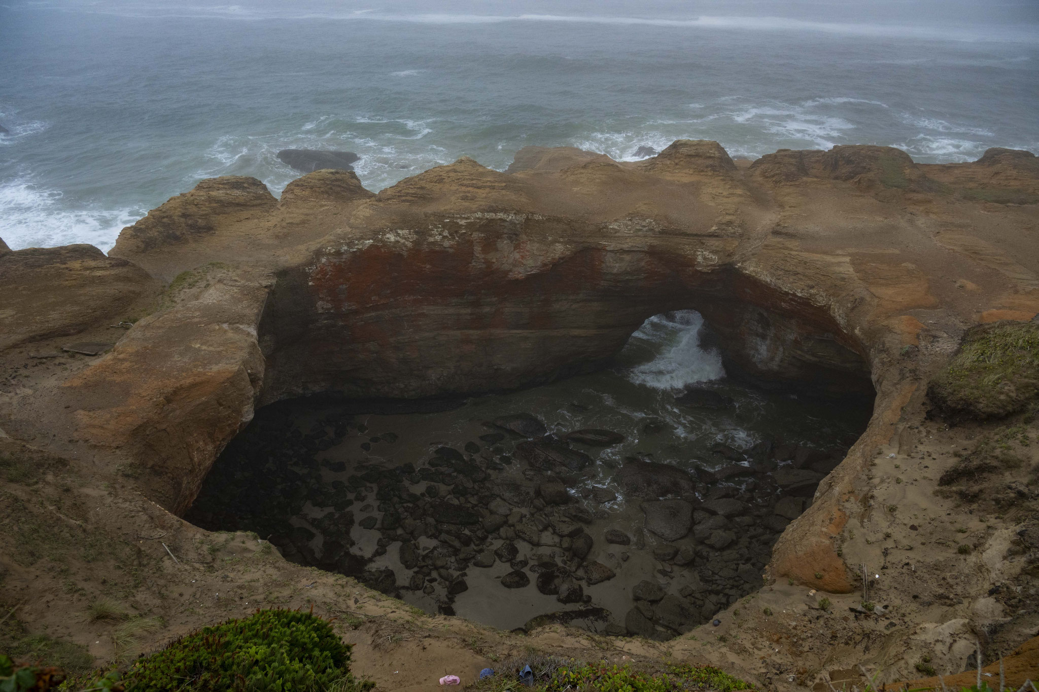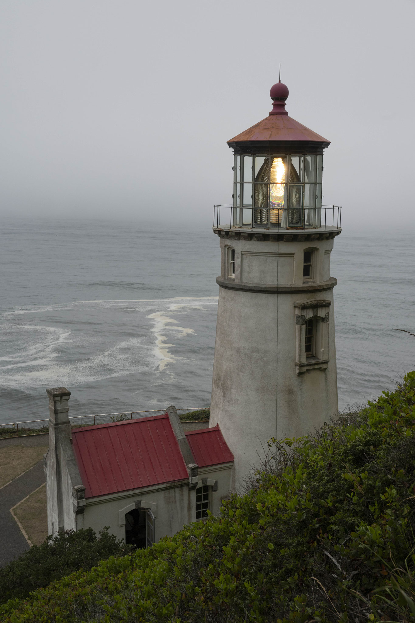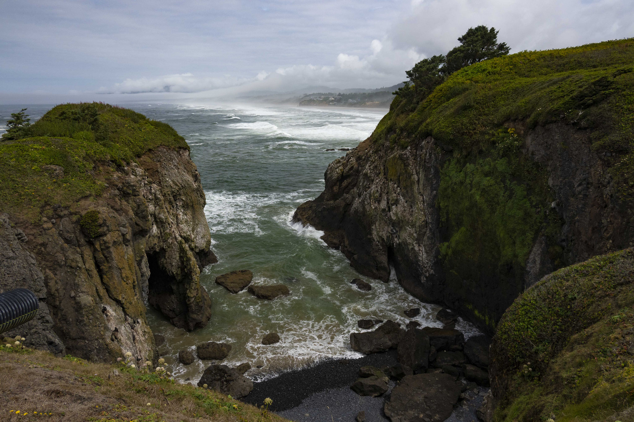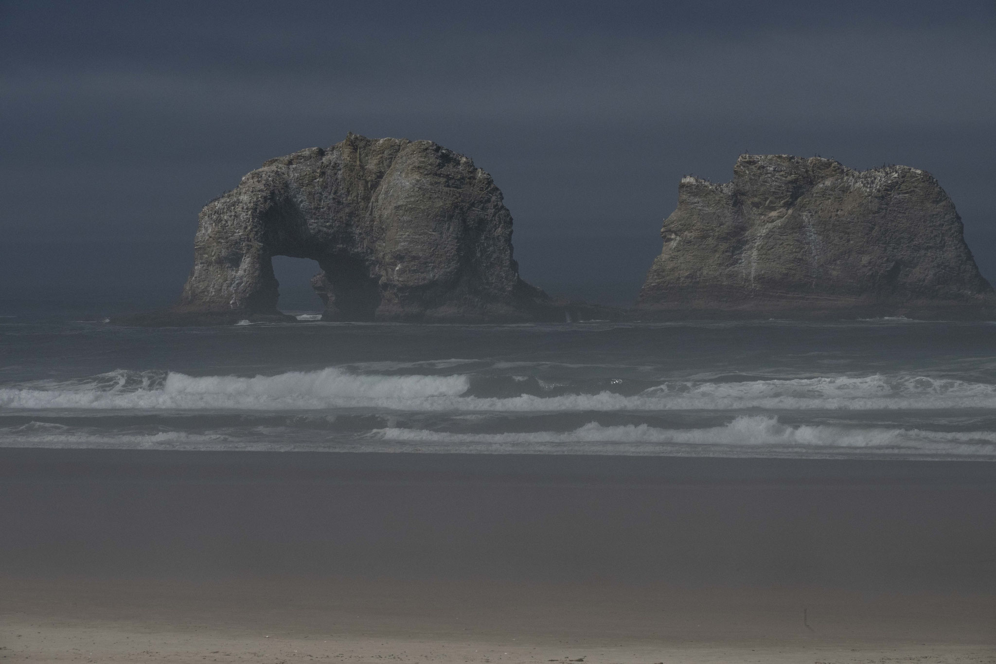 Wenn man einen Reiseführer über Oregon aufschlägt, dann ist es die Küste, die dort angepriesen wird. Also folge ich weiter dem US-Highway 101, der immer in Küstennähe verläuft. Diese ist dann tatsächlich auch sehr schön und abwechslungsreich: lange Sandstrände, Dünen, Felsen, Klippen vorgelagerte Inseln… Aber: Schöne Küste = viel Tourismus = viel Verkehr. Das Wetter spielt die ersten Tage noch ganz gut mit, zumindest bis in die frühen Nachmittagsstunden ist es sonnig. Dann zog in den letzten Tagen dichter Seenebel auf und von den spektakulärsten Aussichtspunkten war nichts als eine weiße Wand zu sehen.