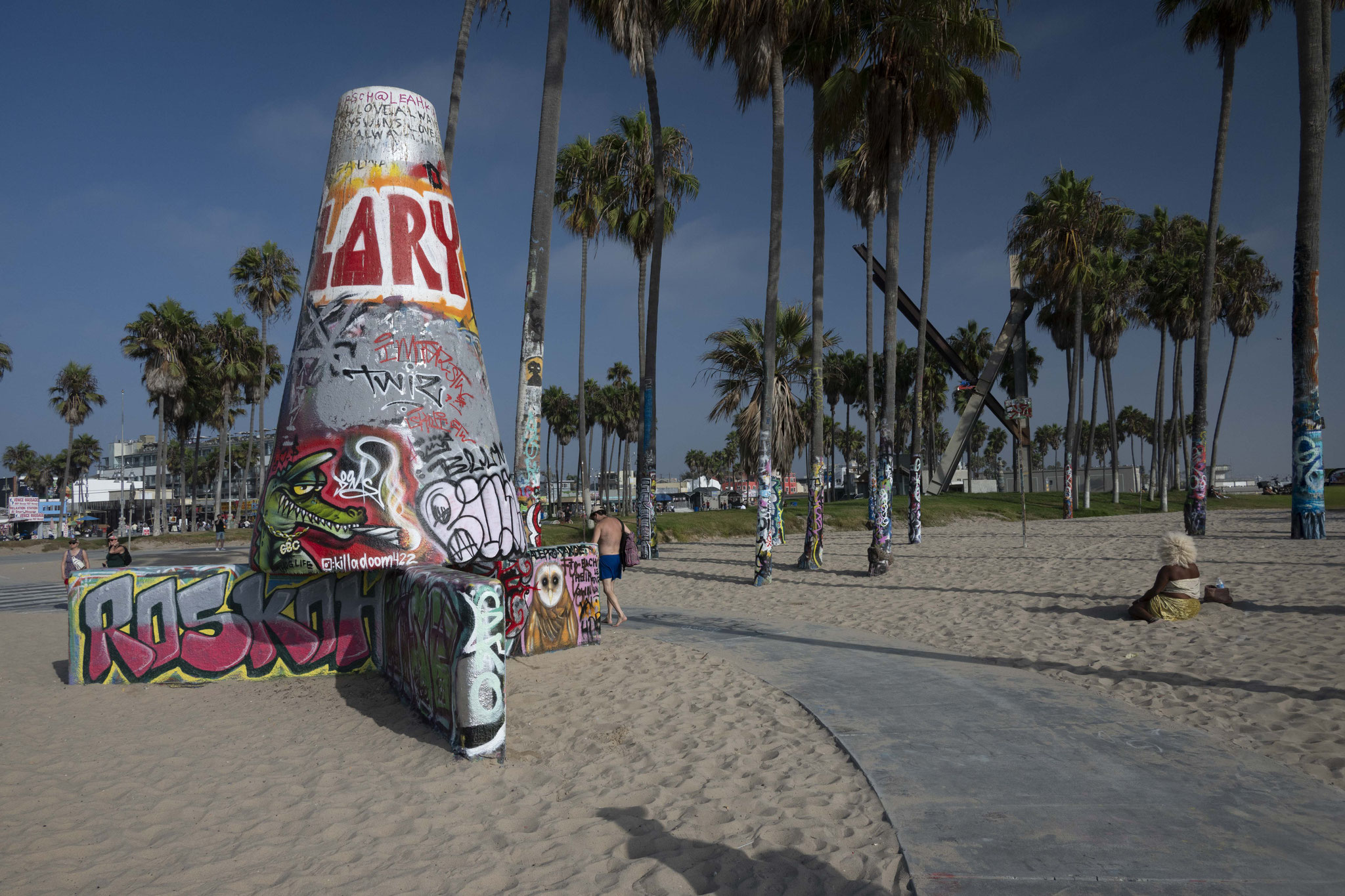 Los Angeles ist groß. Riesengroß. Nach Einwohnern die zweitgrößte Stadt der USA, was aber noch viel mehr beeindruckt, ist die Ausdehnung der Stadt und ihrer Vororte. Zu groß, um sie in einem Kurzaufenthalt kennenzulernen. Drei Nächte gebe ich mir und miete mich in Santa Monica in Strandnähe ein. In Versuchung, die Stadt mit dem Fahrrad zu erkunden, komme ich gar nicht erst. Allein die Fahrten mit öffentlichen Verkehrsmitteln in der „näheren Umgebung“ nehmen schnell zwei Stunden – eine Richtung – in Anspruch und dabei bin ich noch weit von einer Durchquerung der Stadt entfernt. Die Auswahl ist nicht so einfach, was man gesehen haben muss. Venice Beach – klar. Habe ich mir schon auf dem Weg in mein Domizil angesehen und die Ernüchterung könnte kaum größer sein, aber vielleicht ist ein Montagnachmittag Mitte September auch nicht die Primetime, um das zu erleben, was diesen Strand ausmacht. Ein toller Strand, weitgehend menschenleer, ein paar Jogger, ein paar Skater, einige Radfahrer. Am meisten los ist noch auf der Rollschuhbahn und der Skaterbahn. In Muscle-Beach herrscht deutlicher Muskelschwund. Irgendwie fehlen mir die Poser und Selbstdarsteller, denen dieser Strandabschnitt seinen Ruf verdankt. Dafür gibt es viele Obdachlose, die bei den wenigen Menschen noch mehr ins Auge fallen als sonst. Und das Angebot der Geschäfte macht auch sehr deutlich, dass es sich hier um eine Touristenfalle handelt.