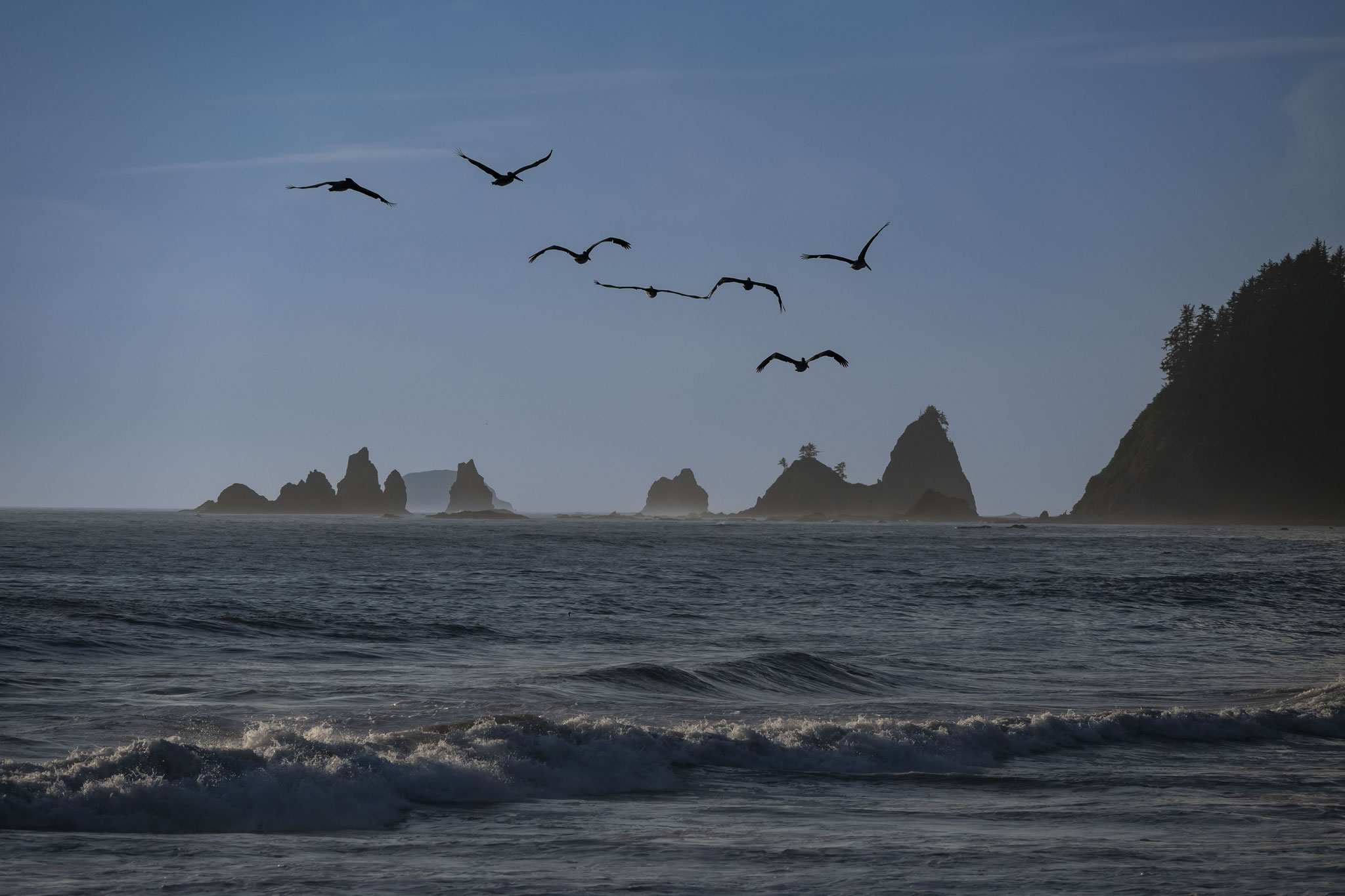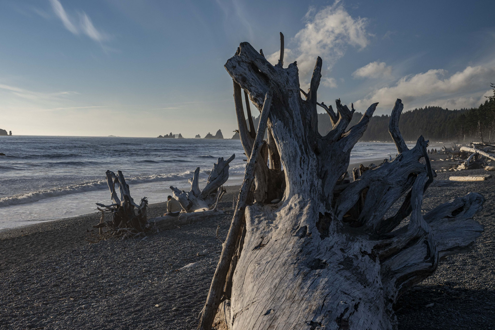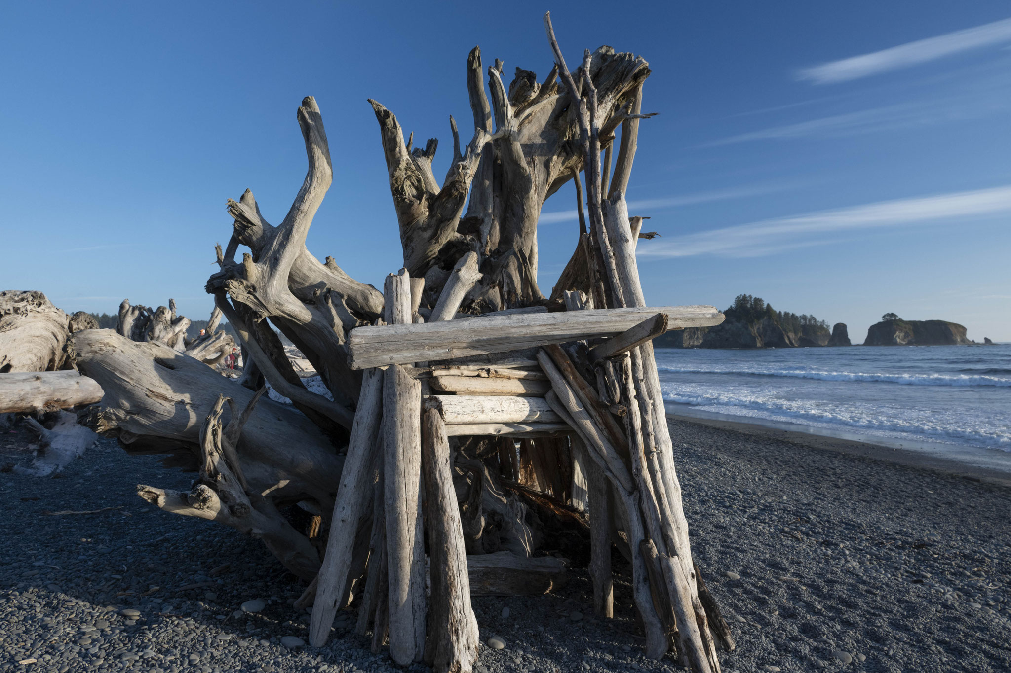 Zwei Tage bin hiergeblieben, um auf kurzem Weg an unterschiedliche Küstenabschnitte zu fahren. Einfach traumhaft ist Rialto Beach mit seinen unbeschreiblichen Treibholzmasse, wie ich es in dieser Größe noch nie gesehen habe, dazu ein spektakulärer Sonnenuntergang über dem Pazifik und auf der anderen Seite der aufgehende Vollmond.