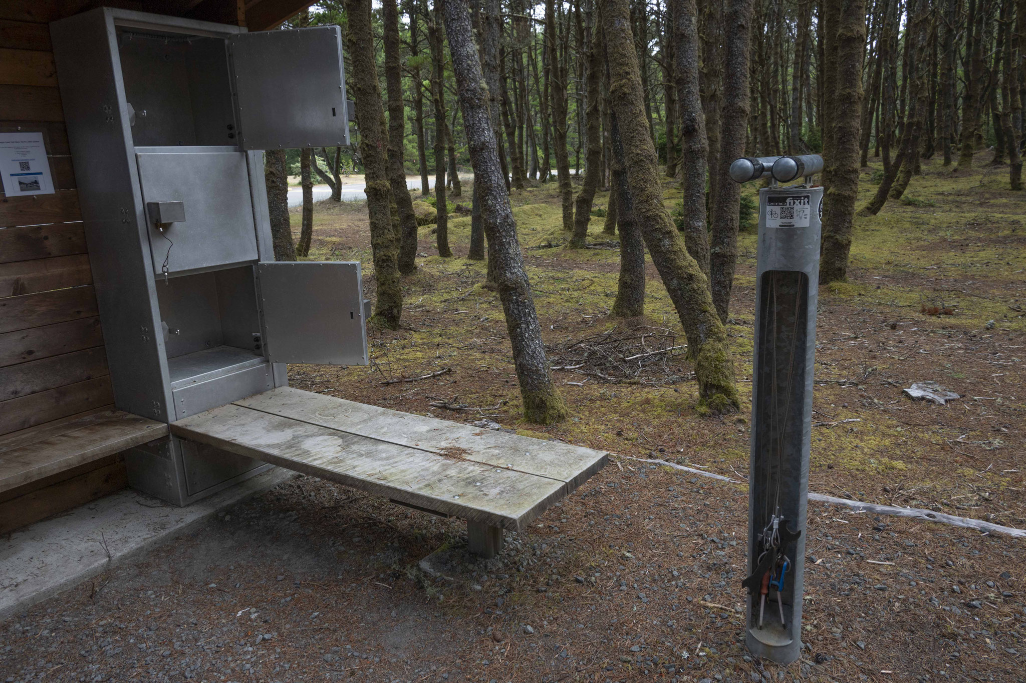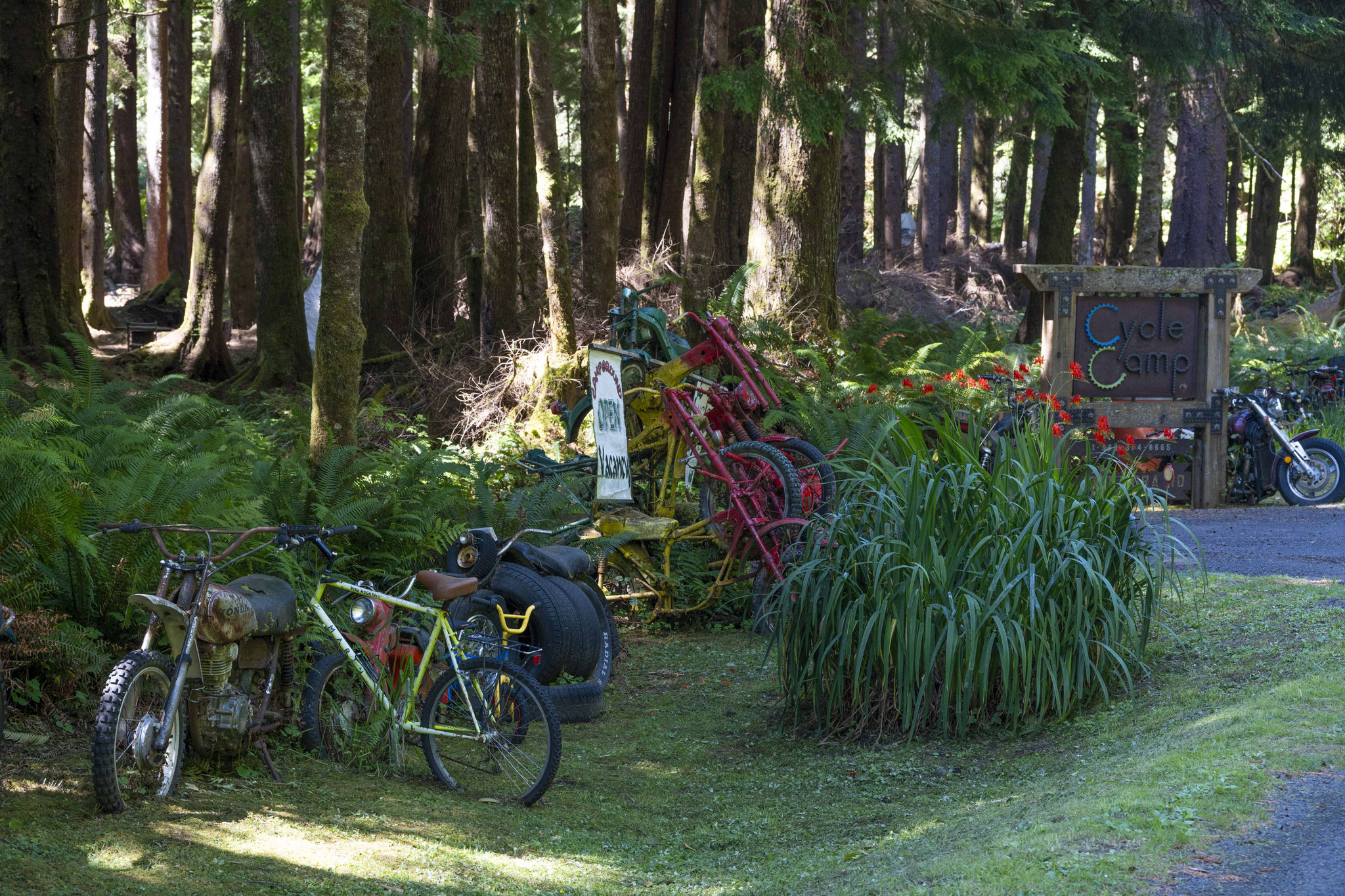 In Washington State war ich ja schon von den State-Park-Campgrounds begeistert, was ich hier erlebe, habe ich so noch nie gesehen. Auf dem Campingplatz von Manzanita ist ein riesiger Bereich für Hiker und Biker reserviert, lichter Wald, weite Abstände zwischen den Zelten, für die extra Plattformen angelegt sind. Und mittendrin einemFahrrad-Reparaturstation, mit Luftpumpe, Werkzeug und einer Halterung zum Aufhängen der Räder bei der Reparatur. Und daneben Schließfächer – nicht für Lebensmittel, sondern für Wertsachen, einschließlich USB-Anschlüssen zum Aufladen von Geräten! Und alles für 10,- Dollar pro Nacht, heiße Duschen und saubere Toiletten selbstverständlich inbegriffen. In Kanada habe ich 20,- Dollar in Provincial Parks bezahlt, wo es außer einem Plumpsklo und einem Campingtisch nichts gab, nicht einmal Trinkwasser.