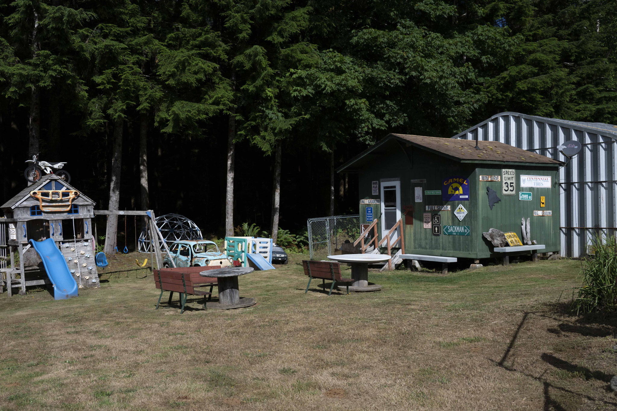 Mein nächstes Ziel auf dem Weg durch den Park sind die (erreichbaren) Strände an der Westküste der Halbinsel. Hier lande ich auf einem der schrägsten Campingplätze der bisherigen Tour. Es ist das Refugium von Bob. Bob ist ein Althippie und hat sich das Waldgrundstück vor 35 Jahren gekauft und nach und nach seinen Vorstellungen entsprechend ausgebaut. Und weil er sich selbst einmal über die z. T. unverschämt hohen Preise für kleine Stellplätze aus regulären Campingplätzen geärgert hat, setzte er die Idee eines Freundes um und bietet sein Grundstück heute nur Zweiradfahrern – mit oder ohne Motor – zum Übernachten an. Kostenlos. Und wenn es einem gefallen, wird man gebeten, beim Verlassen eine freiwillige Spende zu geben. Alles ist sauber und aufgeräumt, alles ein bisschen speziell und scheinbar sind hier alle dauerbekifft.