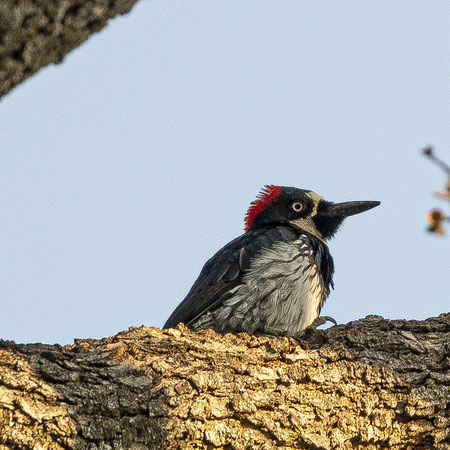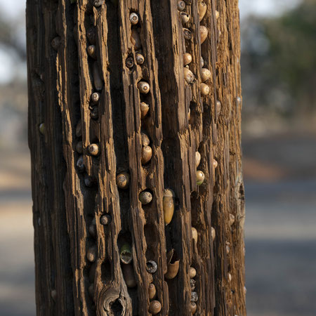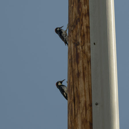 Den Weg Richtung Osten aus der Stadt habe ich gewählt, weil noch ein anderes Ziel auf meiner Wunschliste hier in Kalifornien steht: Yosemite National Park. Und hier natürlich in erster Linie das Yosemite Valley. Das ungelöste Problem ist allerdings, dass Täler meistens in den Bergen liegen, was nur schwer zu erklären ist. Für mich bedeutet das, ich muss erst einmal über das Kalifornische Küstengebirge, um in das Central Valley zu gelangen und von dort über einen knapp 1900m hohen Pass in der Sierra Nevada zu meinem eigentlichen Ziel. Der direkte Weg führt durch touristisch wenig erschlossenes Gebiet und setzt bei der Suche nach Übernachtungsmöglichkeiten ein wenig Kreativität voraus. Hinzu kommt, dass in Kalifornien zahlreiche Waldbrände wüten und ich plötzlich vor einer Straßensperrung stehe. Neben einer Flasche kalten Wassers, das bei Temperaturen jenseits von 40 Grad immer willkommen ist, erhalten ich von dem freundlichen Polizisten noch eine Empfehlung für eine Alternativroute und einen Campingplatz am Don Pedro Stausee. Dieser ist mit 40 Dollar einer der teuersten auf der gesamten bisherigen Tour. Dafür bin ich ausnahmsweise einmal nahezu allein und morgens werde ich von einem vielstimmigen Vogelkonzert geweckt. Ein besonderes Schauspiel bieten dabei die zahlreichen Eichelspechte, die Eicheln überall in Holzpfosten oder Baumrinde deponieren.