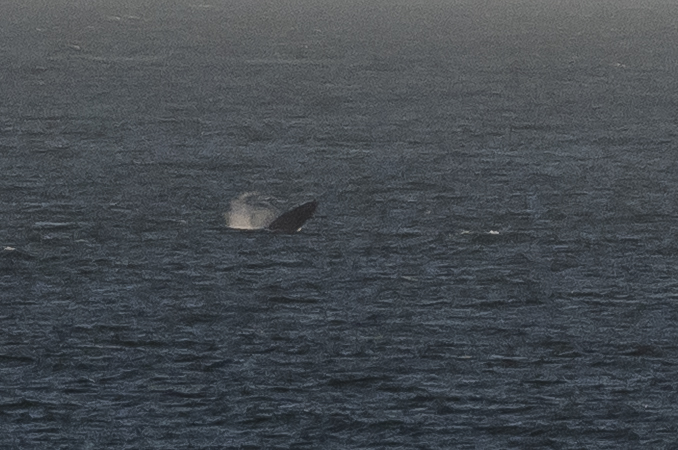Seit meinem letzten Bericht habe ich eine ganze Menge gesehen und versuche, einige Eindrücke hier widerzugeben. Ausgestattet mit einer funkelnagelneuen Iso-Matte und einem provisorisch reparierten Sattel mache ich mich von Fort Bragg auf den Weg nach San Francisco, der ersten Großstadt seit Vancouver und sicherlich eines der Highlights dieser Reise. Dort habe ich mir für drei Nächte ein Hotelzimmer gebucht, um mir die Stadt ohne Fahrrad anzusehen. Unterwegs mache ich halt auf einem kleinen Campingplatz an der zerklüfteten Küste in Walsh Landing. Abends nutze ich die Gelegenheit, in einem Restaurant in der Nähe etwas zu essen, denn meistens sind die Campingplätze der State Parks abgelegen von Ortschaften in der Natur. Der Burger ist aber nicht das Beste, was ich an diesem Abend geboten bekomme. Beim Essen mit Blick auf den Ozean entdecke ich weit draußen eine Gruppe Buckelwale, die sich dort stundenlang aufhält und wieder und wieder springen die Tiere aus dem Wasser und klatschen mit großer Fontäne auf die Wasseroberfläche. So etwas habe ich noch nie gesehen, leider ist die Entfernung sehr groß, aber ein Beweisfoto muss trotzdem sein.