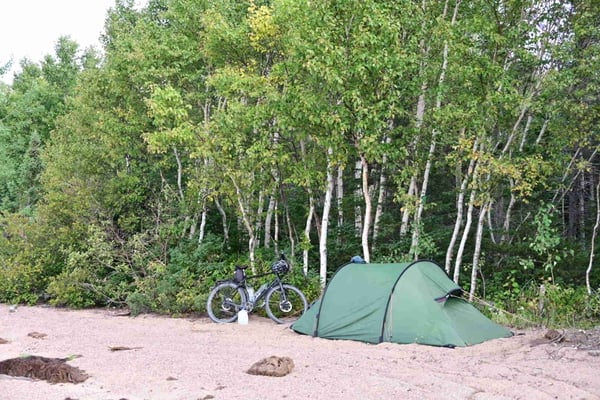 Aber irgendwie passt dieses Nachtlager in eine ganze Reihe von ungewöhnlichen Orten, wo ich in den letzten beiden Wochen geschlafen habe. Angefangen hat es in Perth-Endover, noch in New Brunswick. Am späten Nachmittag will ich dort noch meine Lebensmittelvorräte auffüllen und fahre zum kleinen Supermarkt des Ortes. Während ich mein Fahrrad abstelle, werde ich von einer Frau angesprochen, die mir anbietet, in einem Appartement zu übernachten, das zwar nicht möbliert ist, aber sauber, trocken und eine heiße Dusche gibt es auch. Eigentlich will ich noch ein bisschen fahren, aber da nicht mehr viel Zeit bis zum Abend ist und ich auch noch keine Alternative habe, stimme ich zu und eine halbe Stunde später stehe ich vor der angegebenen Adresse, kann allerdings nicht so recht glauben, dass hier richtig zu sein, denn das Haus gleicht eher einer Ruine als einem Appartement und die Umgebung ist total vermüllt. Meine Gastgeberin erwartet mich schon, erklärt, dass sie noch 23 weitere Immobilien besitze und sie gerade dabei wären, dieses Haus zu renovieren. Immerhin sind die Holzfußböden schon abgeschliffen und neu versiegelt – keine Ahnung, warum man bei einer Renovierung damit anfängt, bei dem Haus wären mir ca. 100 andere Sachen eingefallen, die vorher dran gewesen wären. Auf die angebotene Matratze, die draußen am Treppengeländer lehnt und „trocken sein müsste“, verzichte ich gern. Mit der Bitte, das Haus am nächsten Morgen beim Verlassen abzuschließen, werde ich allein zurückgelassen. Immerhin: eine funktionierende Toilette und eine heiße Dusche gibt es, der Rest ist Improvisation und ich bin ganz froh, dass ich meine Isomatte auf dem frisch versiegelten Fußboden ausbreiten kann.