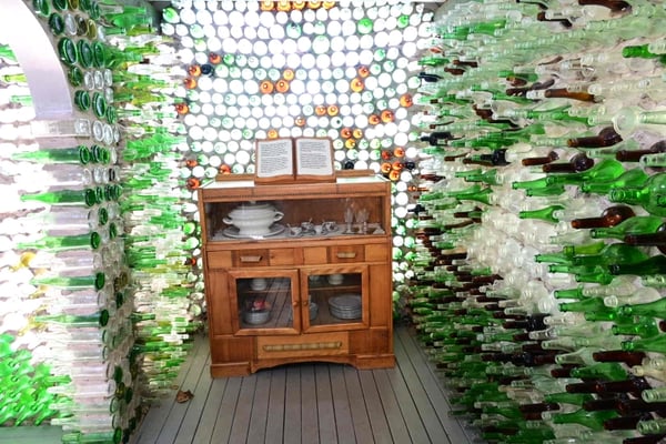 Dass es auf PEI auch den einen oder anderen kuriosen Menschen gibt oder gab, habe ich nicht nur bei dem Bauernkarneval erfahren. Rein zufällig komme ich an dem Flaschenhaus vorbei. Inspiriert von einer Postkarte, die ihm seine Tochter von Vancouver Island von einem Flaschenschloss geschickt hat, fing der Erbauer an und sammelte 25.000 Flaschen, um daraus ein Kapelle, eine Bar und ein Wohnhaus – alles im Kleinformat – zu bauen. Die Tochter lebt heute anscheinend ganz gut vom Besucherzulauf und dem Souveniershop.