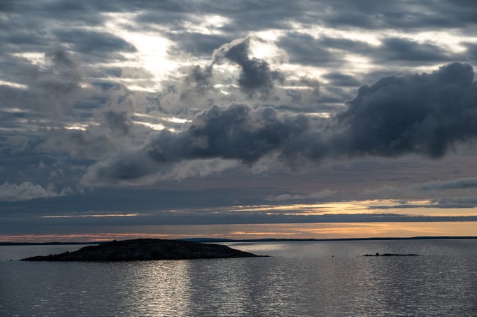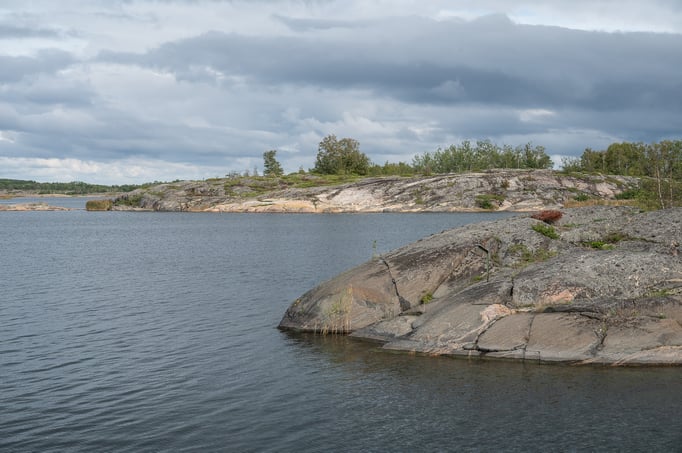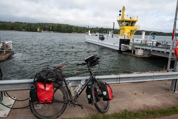 Mein Ziel hier in Finnland ist Kustavi. Von dort will ich mit Fähren über die Ålandinseln nach Stockholm. Obwohl ich erst am frühen Nachmittag in Kustavi ankomme, erreiche ich an diesem Tag noch drei Fähren. Sowohl die ersten beiden Fährfahrten als auch die Strecken dazwischen über die Inseln sind kurz, sodass ich noch die längere Fährfahrt nach Hummelvik schaffe und inclusive Sunset über dem Archipel in der Dämmerung auf Vårdö ankomme. Unter einem Funkmast (einschließlich Plumpsklo) finde ich einen Platz für mein Zelt, wo ich ungestört die Nacht verbringe. Nach Mariehamn, Hauptstadt es Archipels auf Fasta Åland, komme ich noch über ein paar kleine Inseln, die durch Brücken und Dämme miteinander verbunden sind. Mit einer Fähre fahren muss ich nur noch einmal fahren. Leider bekomme ich von den 6700 Inseln und Schären nicht allzu viel zu sehen. Wahrscheinlich ist das Fahrrad auf der Durchreise hierfür wohl das falsche Fortbewegungsmittel und die Schönheit und Vielfalt dieser Insellabyrinths erschließt sich besser von der Wasserseite. Dafür komme ich unversehens und völlig unerwartet in Bomarsund durch die Ruinen einer gigantischen ehemals russischen Festungsanlage, die 1854 noch vor ihrer Fertigstellung von britischen und französischen Truppen zerstört wurde. Zwar blieben die Ålandinseln auch danach noch Teil des russischen Imperiums, wurden allerdings zwei Jahre später entmilitarisiert, ein Status, den die Inselgruppe bis heute hat.