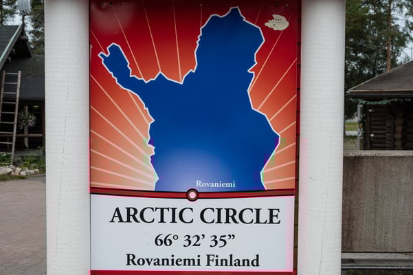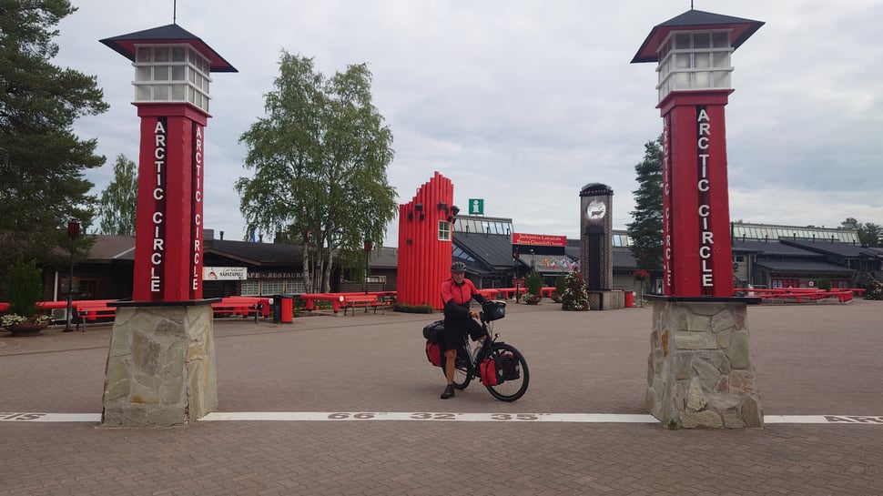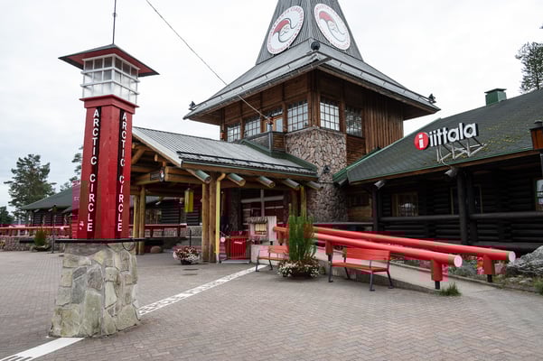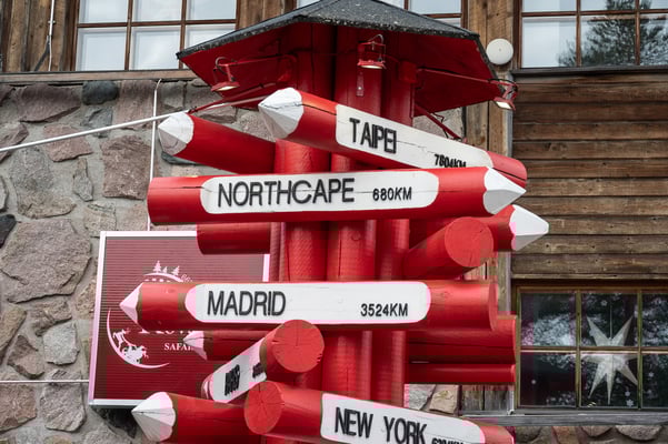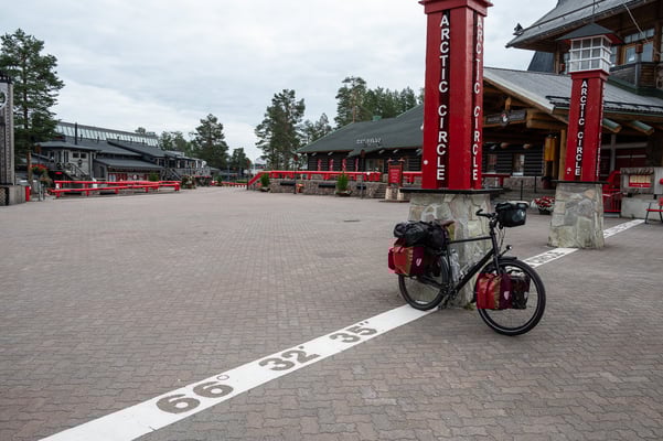 Kurz vor Rovaniemi, der Hauptstadt Lapplands, überquere ich wieder den Polarkreis. Aber anders als auf dem Hinweg, wird dieses imaginäre Band hier touristisch maximal ausgeschlachtet: Es verläuft quer durch das „Weihnachtsmanndorf“! Höchststrafe!!! Früh morgens ist hier noch nichts los, die meisten Geschäfte und Restaurants sind noch geschlossen und über den menschenleeren Platz plärrt Weihnachtsmusik. Und die Geschäfte sind vollgestopft mit billigem Krempel, überwiegend aus fernöstlicher Produktion.