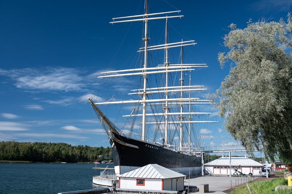 Bei herrlichem Wetter erreiche ich Mariehamn und mein erster Weg führt mich zum Fährhafen, weil ich möglichst bald weiter nach Stockholm fahren will. Laut Display im Terminal legt die nächste Fähre um 14.25 Uhr ab. Allerdings sind die Counter der Fährgesellschaft geschlossen und im Internet ist diese Fähre nicht buchbar. Es dauert eine Weile, bis ich jemanden finde, der mir erklärt, dass heute kein Schiff mehr geht, weil die Fähre zur Inspektion in der Werft ist. Die nächste Möglichkeit nach Schweden zu kommen, gibt es erst am nächsten Tag um 04.30 Uhr – und das gleich mit zwei verschiedenen Fährlinien. Mir bleibt nichts anderes übrig, als mir ein Zimmer in einem Hotel in unmittelbarer Nähe des Hafens zu nehmen und den Nachmittag für einen Spaziergang durch die gepflegte Kleinstadt zu nutzen.