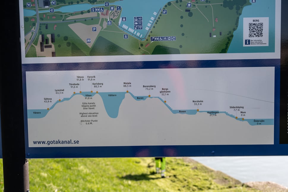 Von zu Hause erreichen mich schlechte Nachrichten und ich will so schnell wie möglich meine Reise beenden. Meine Route führt mich entlang des Götakanals nach Westen. Bei Mem beginnt die Wasserstraße, die Schweden durchschneidet und ich stehe vor der ersten Schleusentreppe in einer wunderschönen, äußerst gepflegten Umgebung. Obwohl wirtschaftlich und strategisch ein Flop, ist der Kanal heute eine der touristischen Attraktionen Schwedens. Aber jetzt, Anfang September, ist auch hier nichts mehr los und die Ausflugsschiffe und (Fahrrad-)Fähren haben ihren Betrieb für diese Saison eingestellt. So muss ich denn um die großen Seen herum und lande einmal auch in einer Sackgasse (weil ich entsprechende Hinweise ignoriert habe) – es bleibt nur der Weg zurück und südlich um den Asplangen herum. Wieder einmal einige schwere Kilometer extra – und wieder einmal selbst schuld.