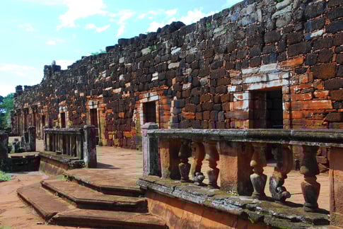 Wenn ich im letzten Bericht geschrieben habe, dass auf der Strecke in Richtung Buenos Aires nicht viel Interessantes zu sehen ist, dann habe ich vergessen, dass ich zwei Tage zuvor alte Steine beguckt habe. Bisschen despektierlich für ein UNESCO-Weltkulturerbe. Denn direkt an der Strecke liegt die besterhaltene Jesuitensiedlung, die hier vor ca. 500 Jahren gegründet und später auf Weisung des spanischen Königs verlassen werden musste. Reduktionen wurden diese Missionssiedlungen genannt und San Ignazio Mini ist die umfangreichste und in Teilen wieder rekonstruierte Siedlung mitten in der Ortschaft San Iganzio.