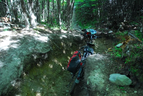 Nicht durchgängig befahrbar meint eigentlich, dass man gelegentlich eine Fähre benutzen muss. Allerdings jenseits von 17% auf losem Schotter geht nur noch schieben!