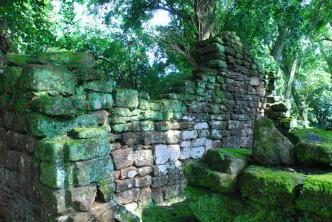 San Ignazio Mini - hier Teile des ehemaligen Kirchenportals - mitten im Urwald.